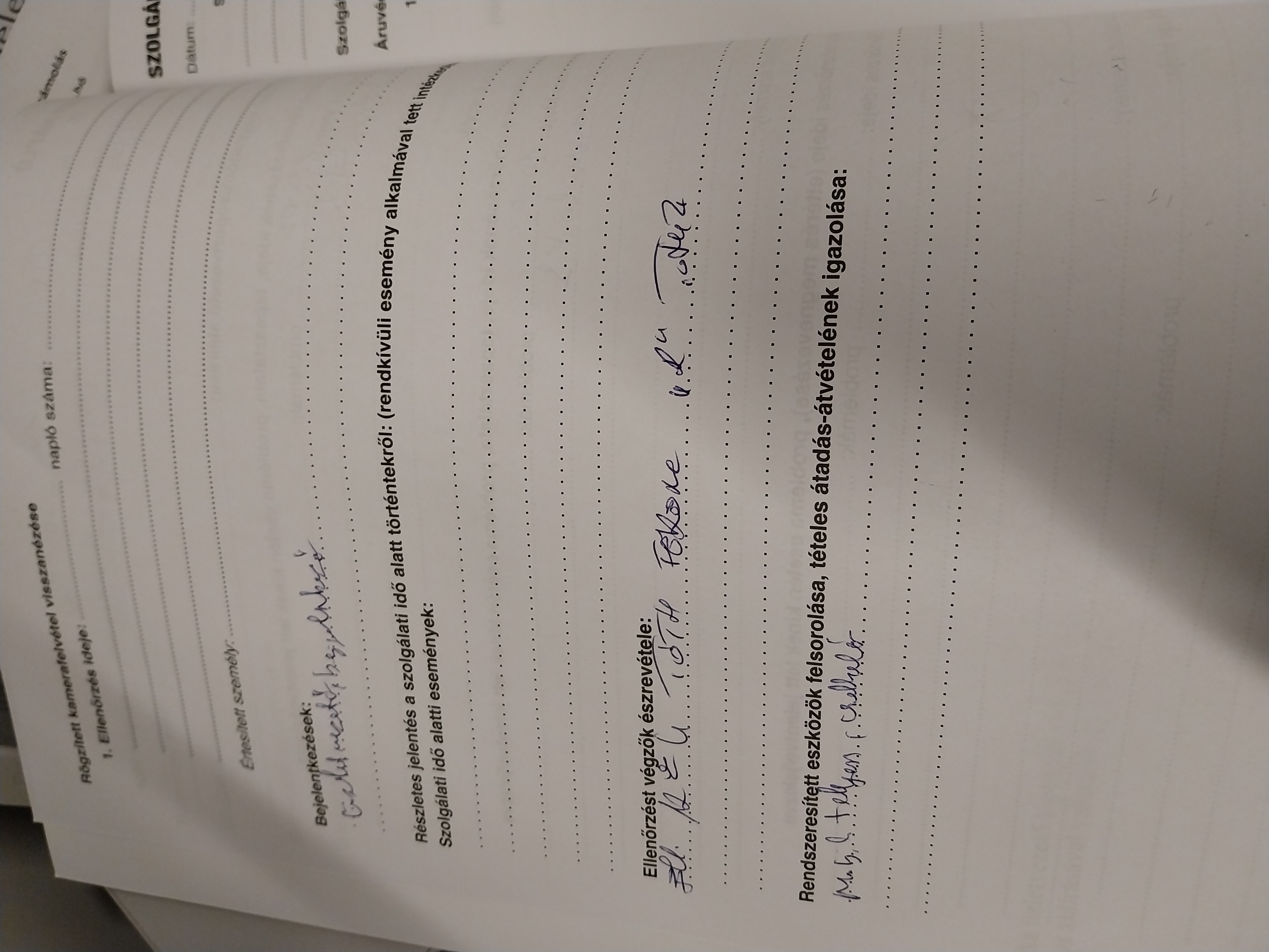 | Az őrzési helyre kiadott munkaeszközök megléte | Megfelel |
