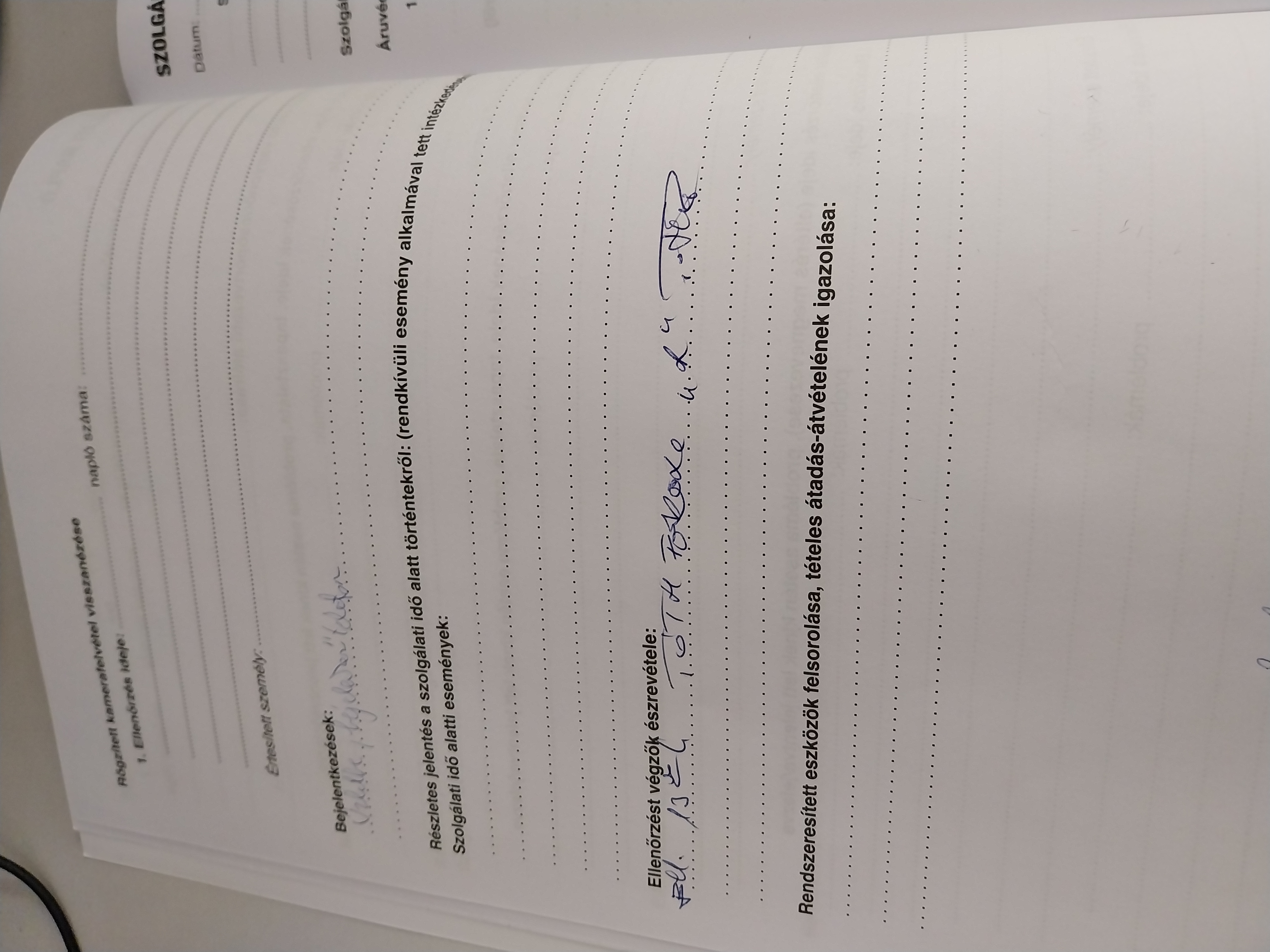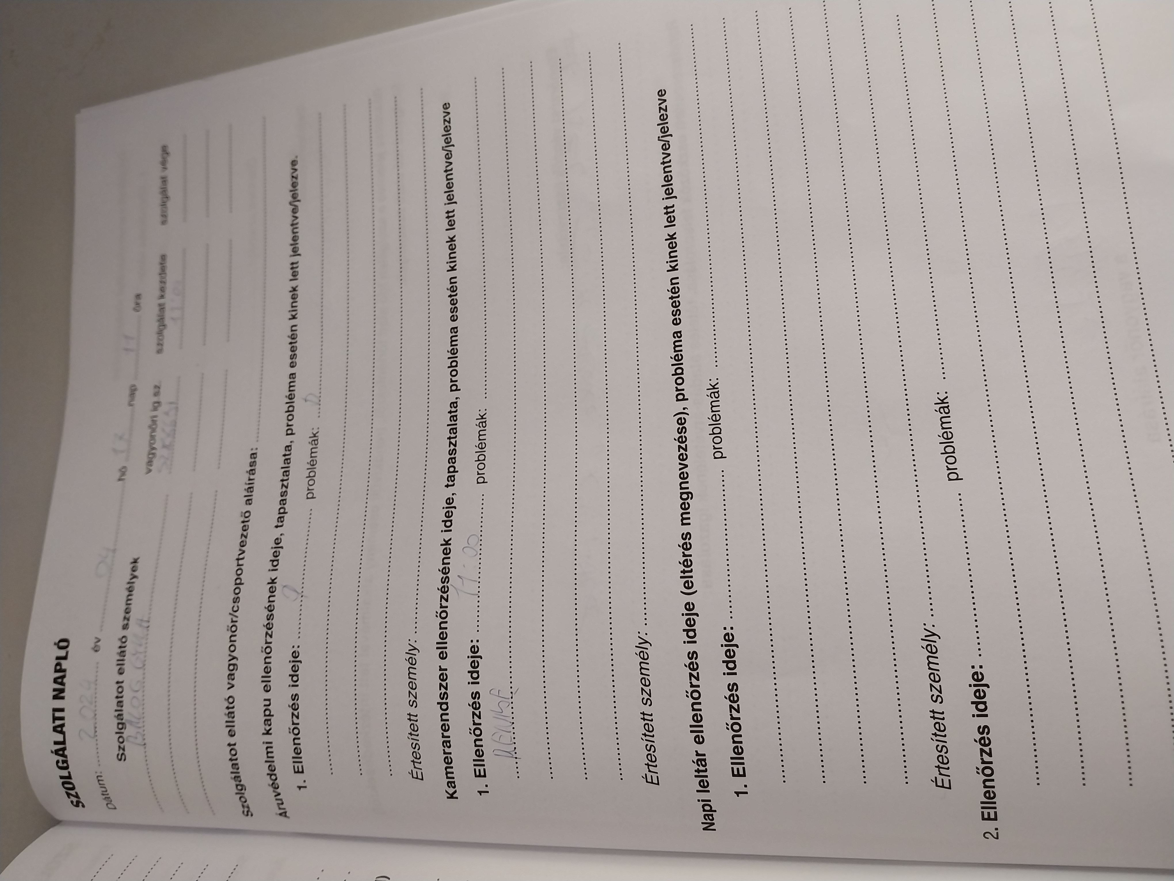 | Az őrzési helyre kiadott munkaeszközök megléte | Megfelel |