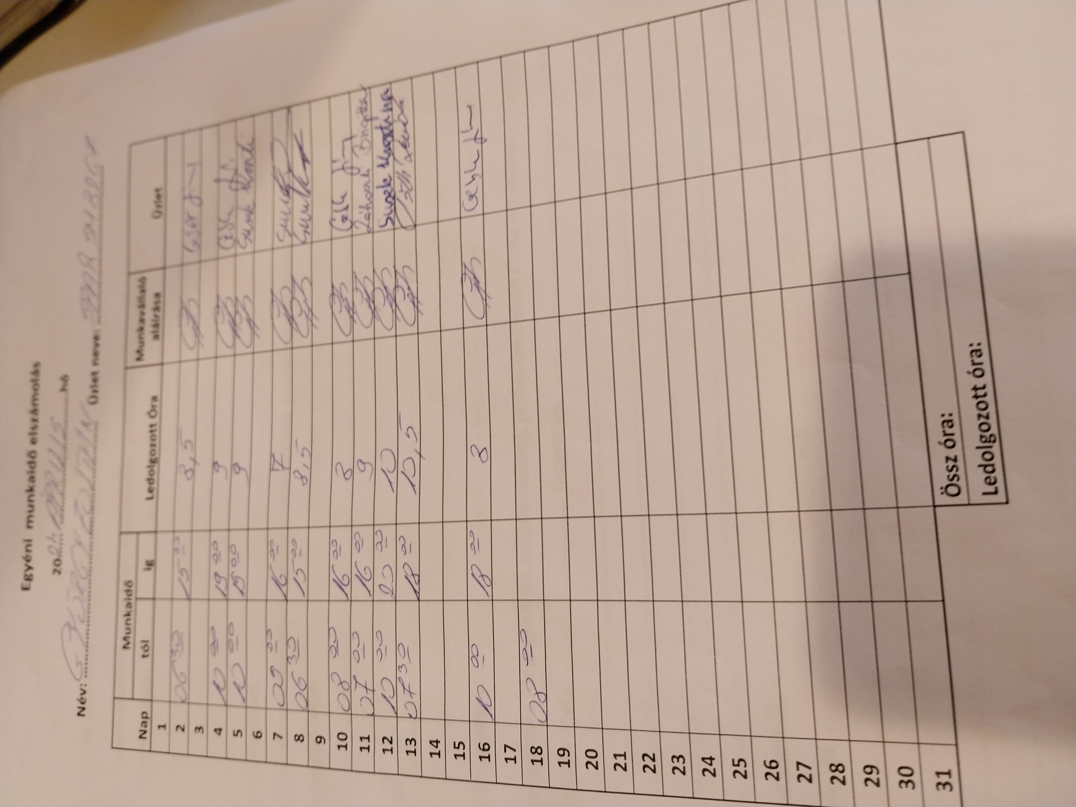 | A munkaidő nyilvántartás (jelenléti ív) vezetése | Megfelel |