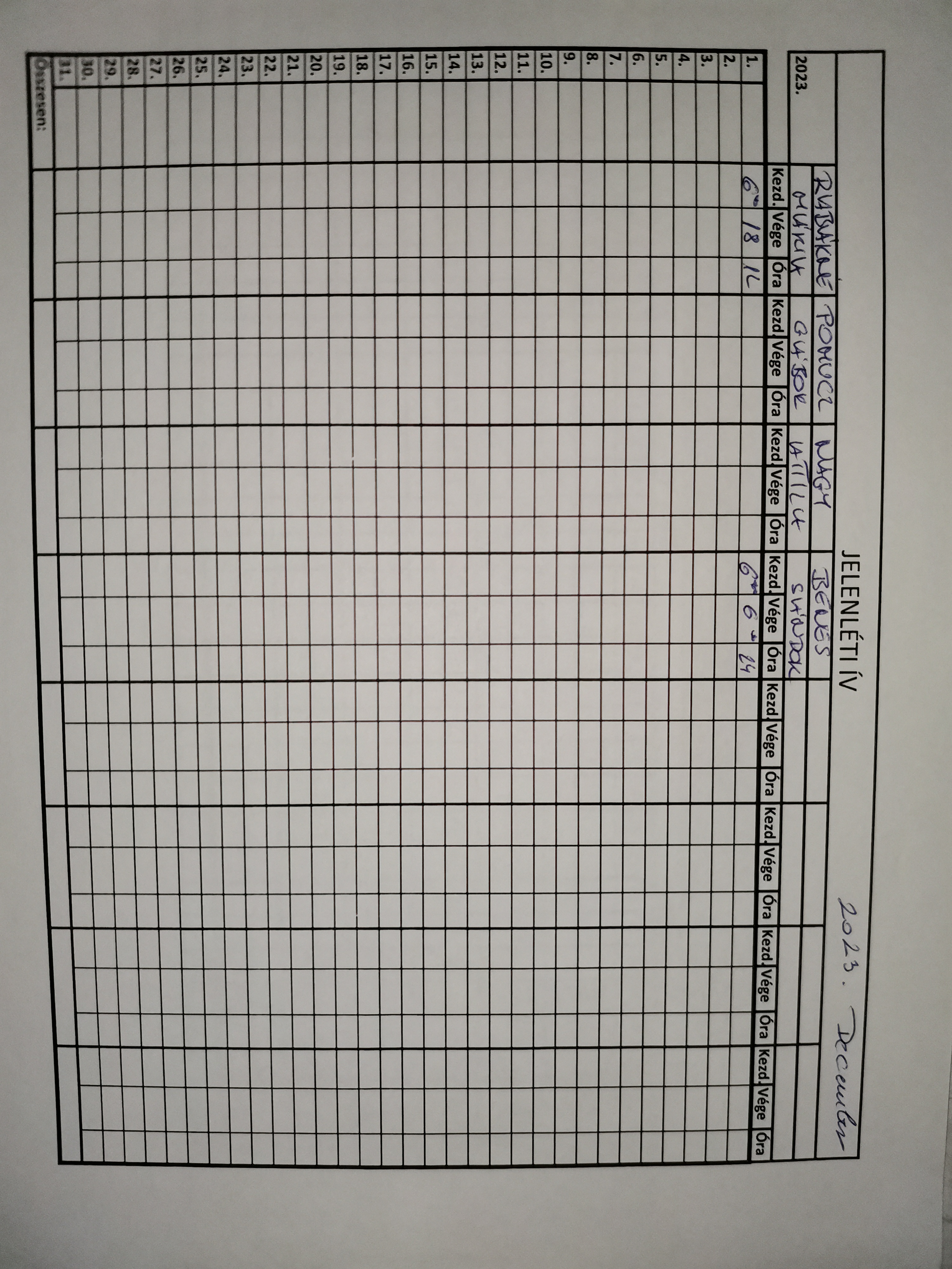 | A munkaidő nyilvántartás (jelenléti ív) vezetése | Megfelel |