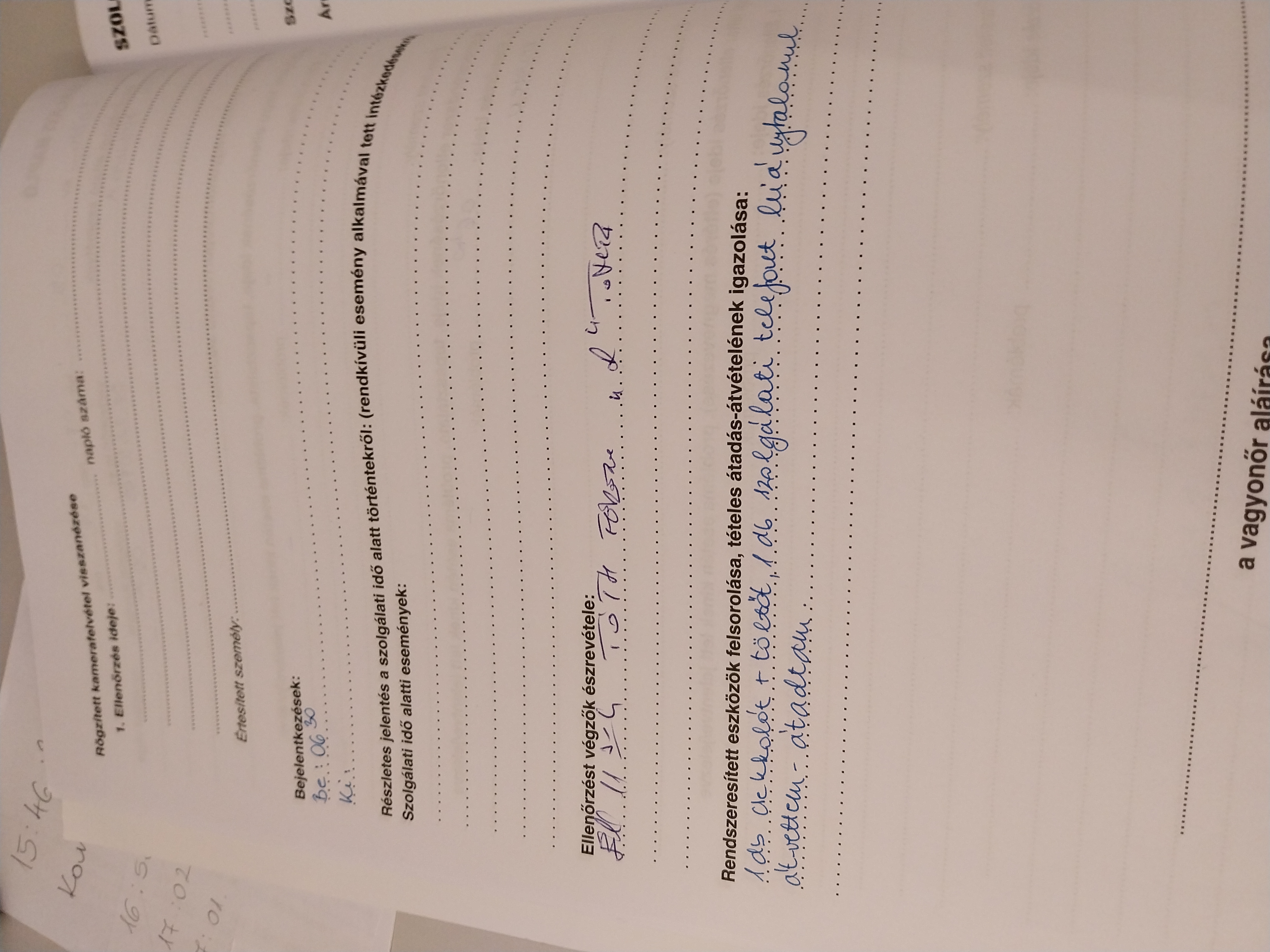 | Az őrzési helyre kiadott munkaeszközök megléte | Megfelel |