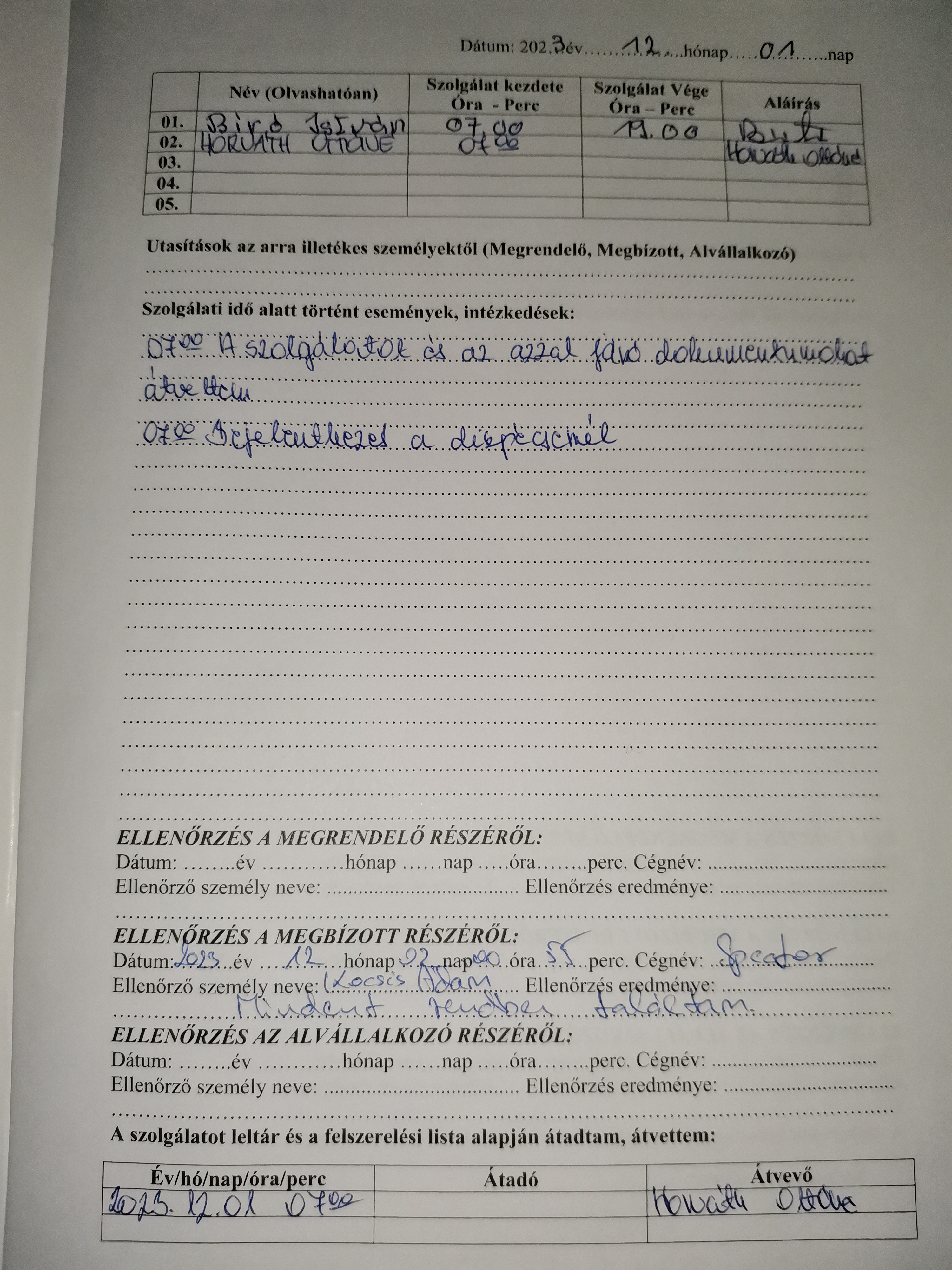 | Alkoholszondás ellenőrzés történt? | Nem |