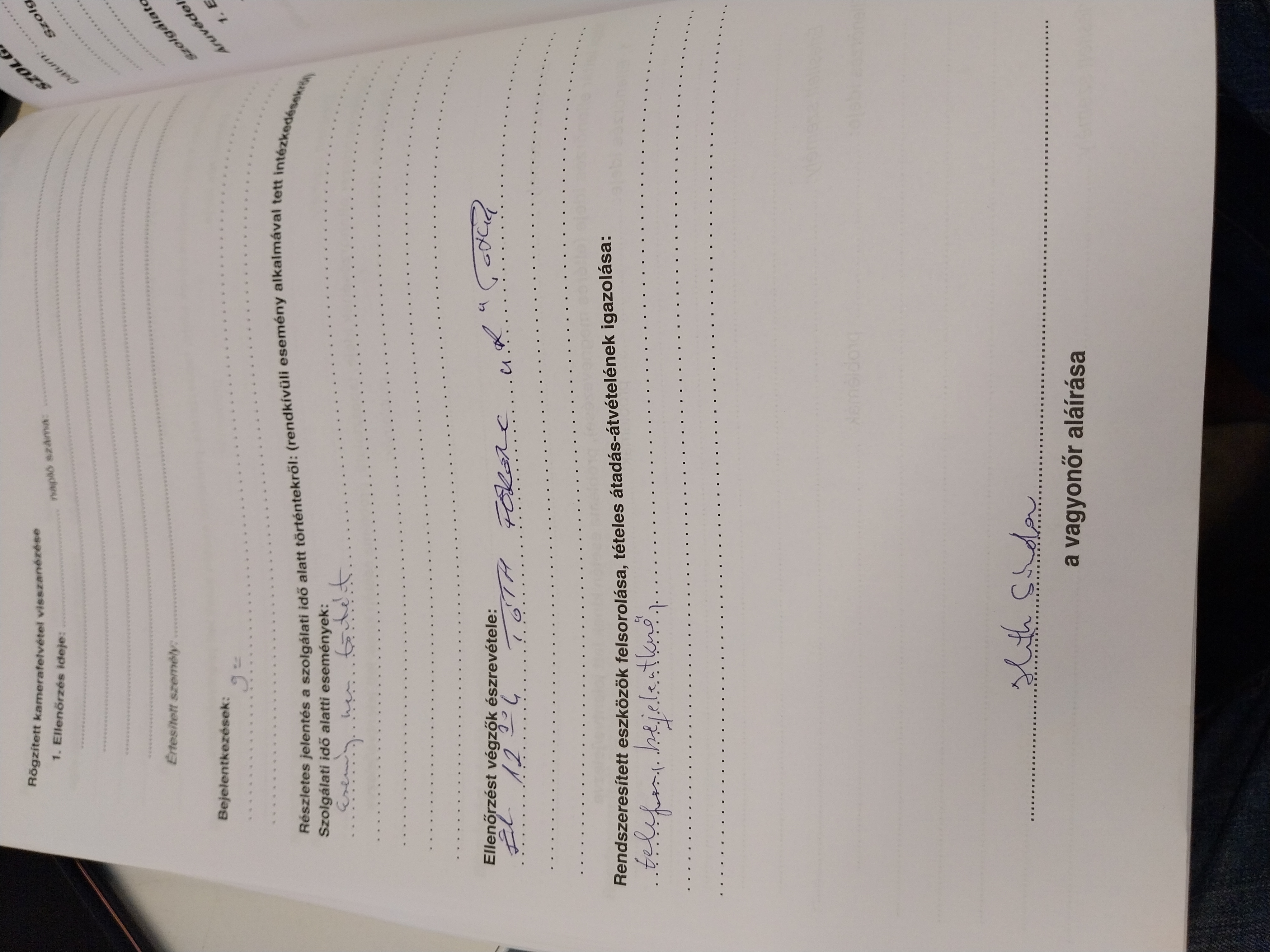 | Az őrzési helyre kiadott munkaeszközök megléte | Megfelel |