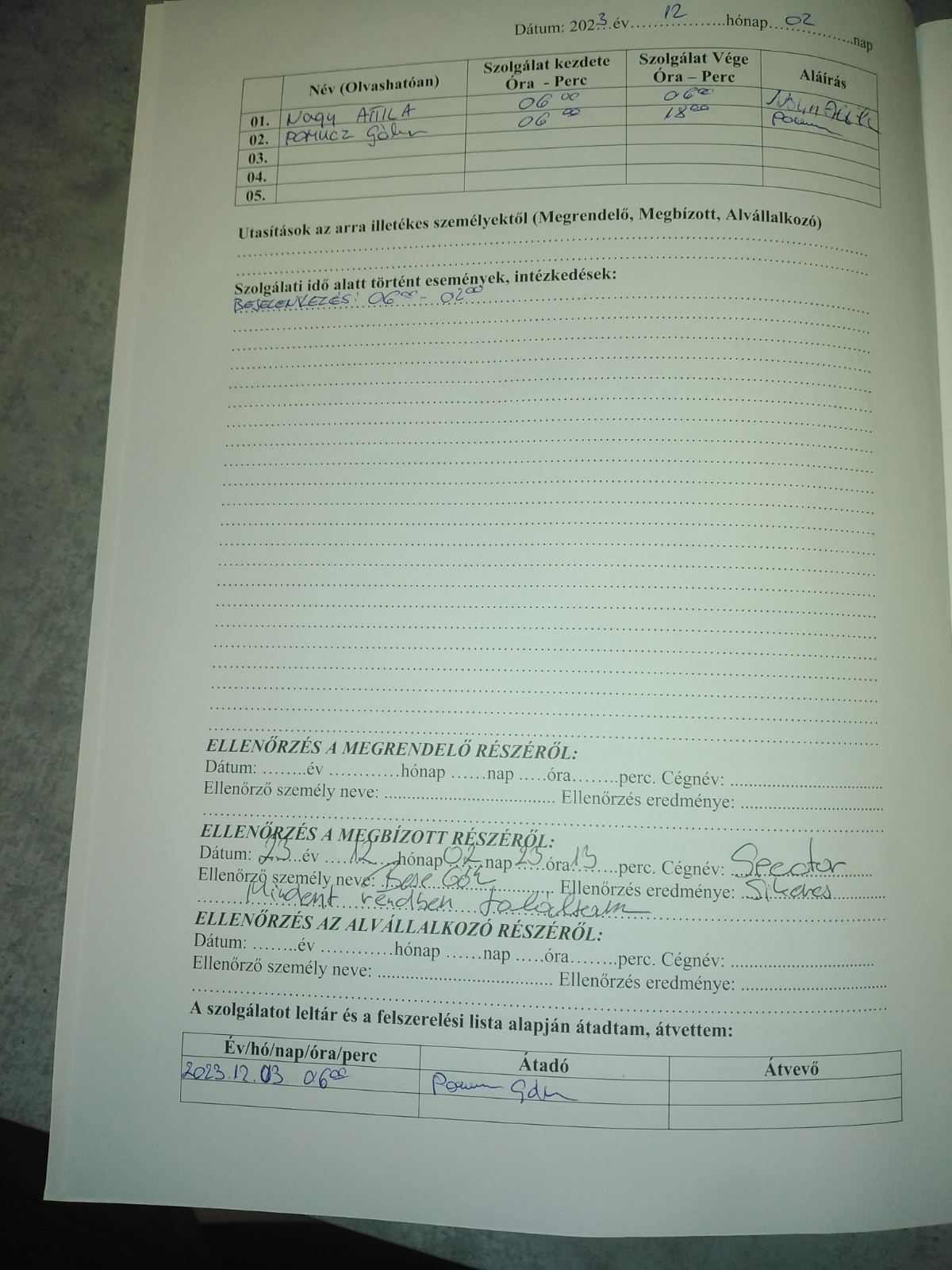 | Az őrhelyre kötelezően előírt oktatások igazolásának megléte | Megfelel |