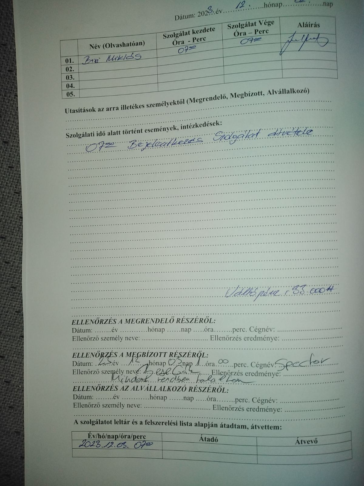 | Van-e az ellenőrzött személynek egyéb észrevétele, javaslata? | Nem |