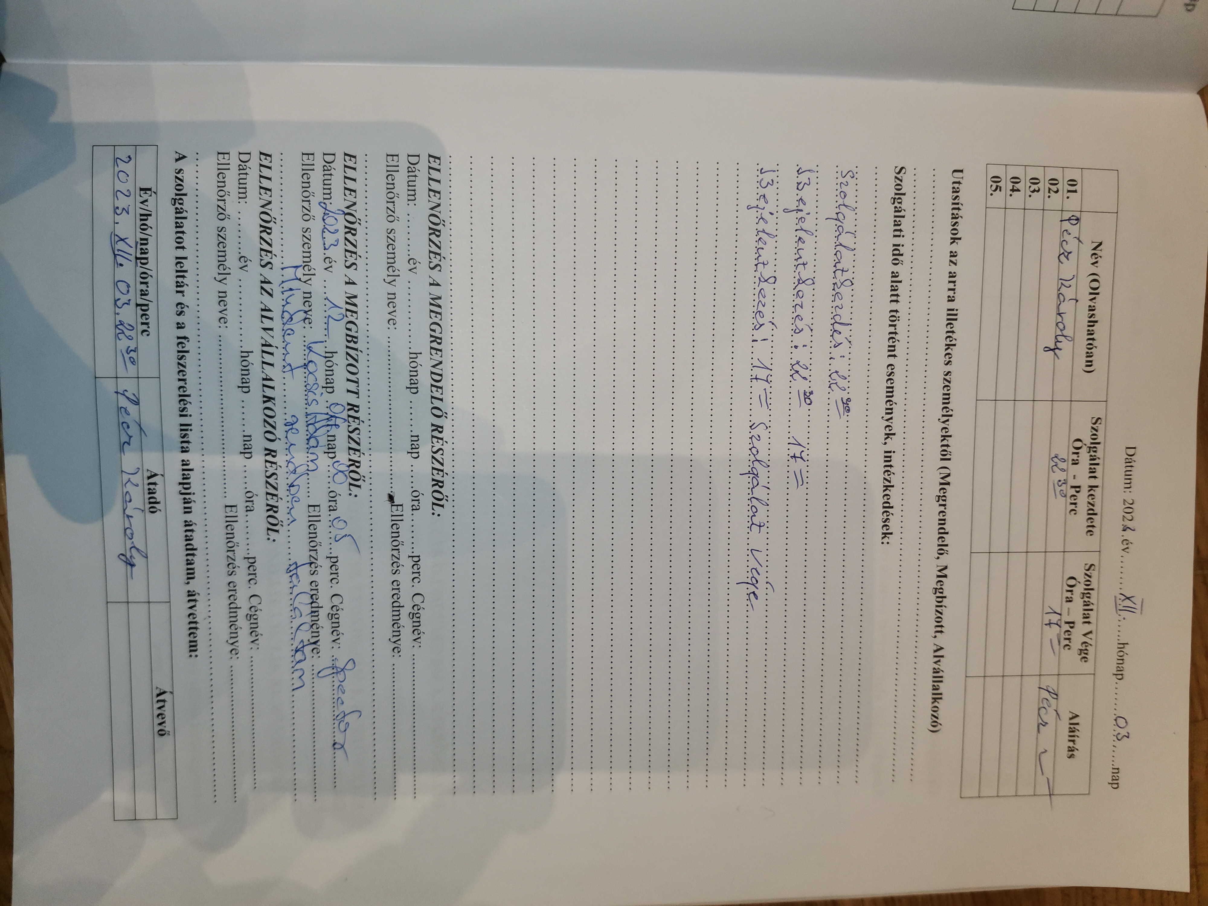 | Az őrhelyre kötelezően előírt oktatások igazolásának megléte | Megfelel |
