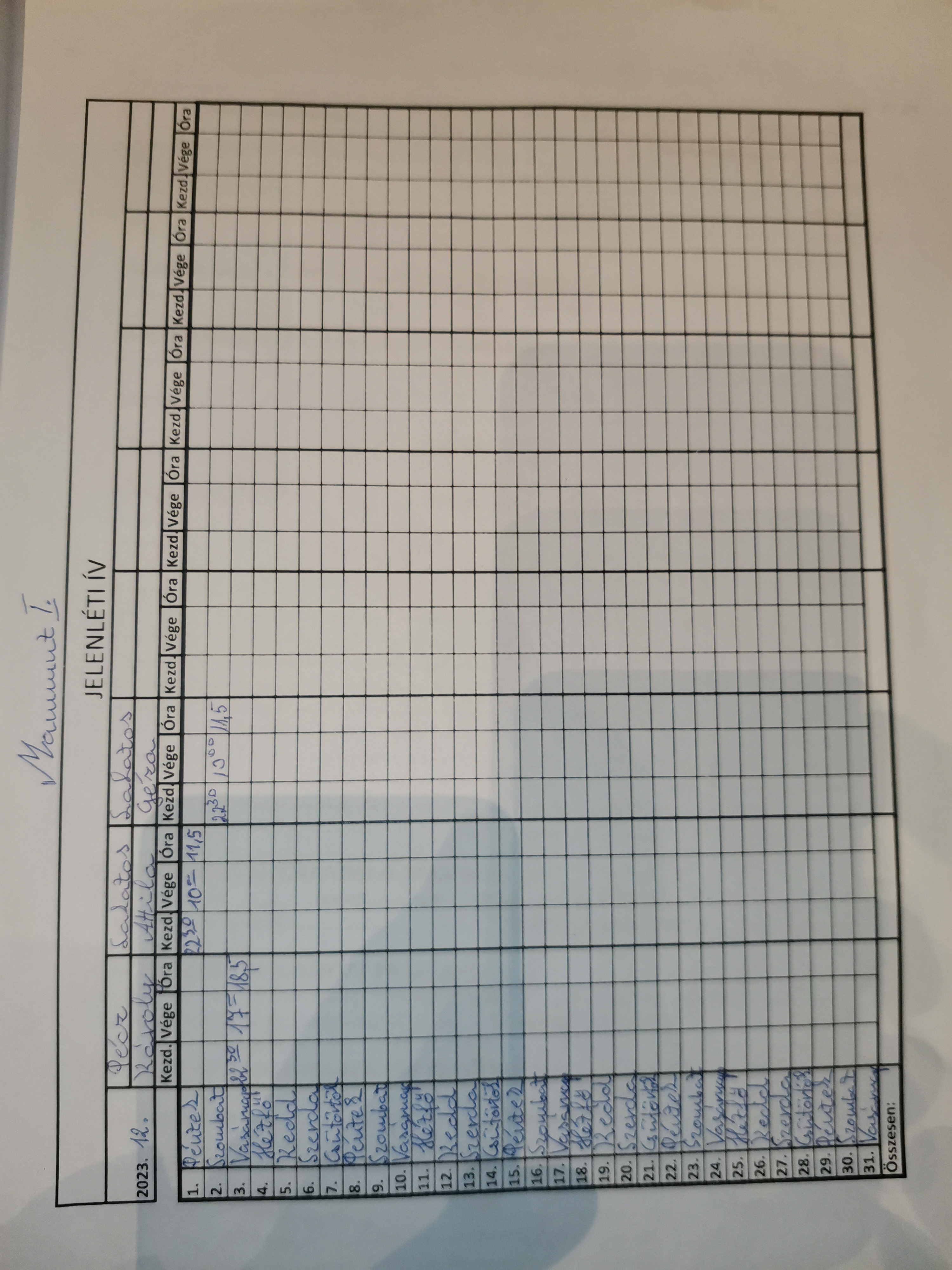 | A munkaidő nyilvántartás (jelenléti ív) vezetése | Megfelel |