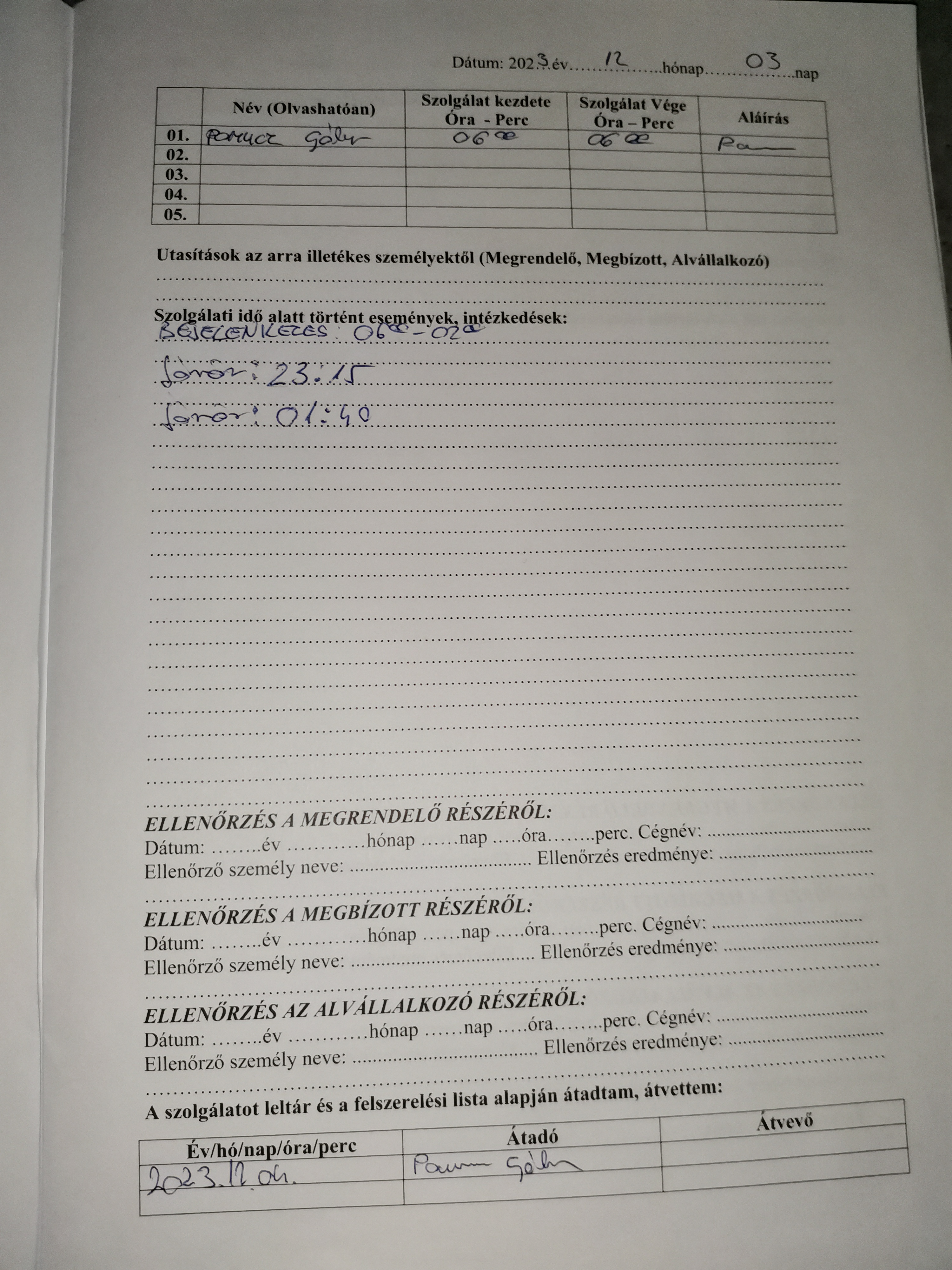 | Az őrhelyre kötelezően előírt oktatások igazolásának megléte | Megfelel |