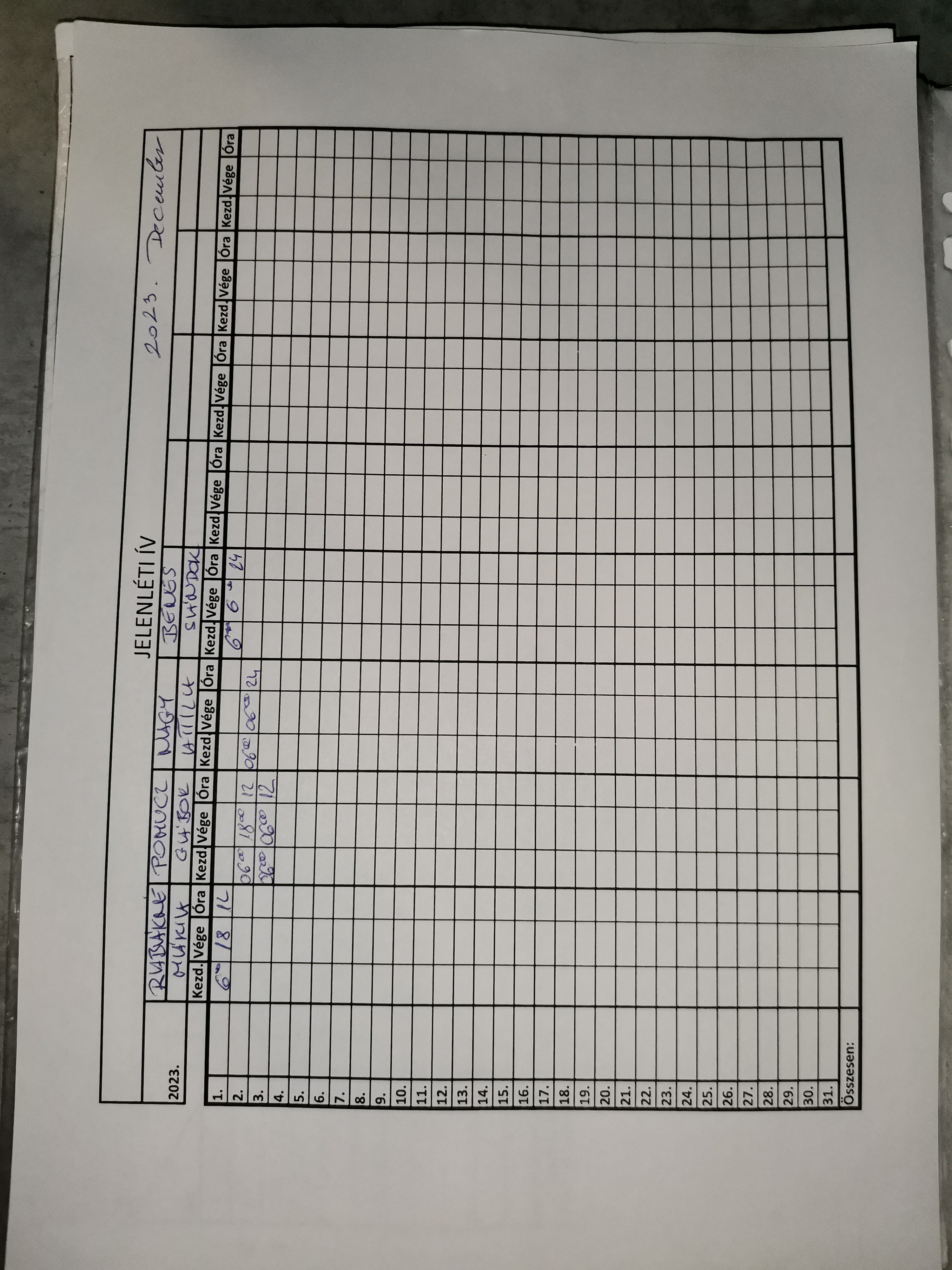 | A munkaidő nyilvántartás (jelenléti ív) vezetése | Megfelel |