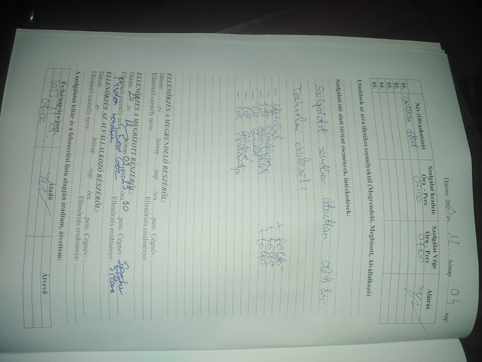 | Az őrhelyre kötelezően előírt oktatások igazolásának megléte | Megfelel |