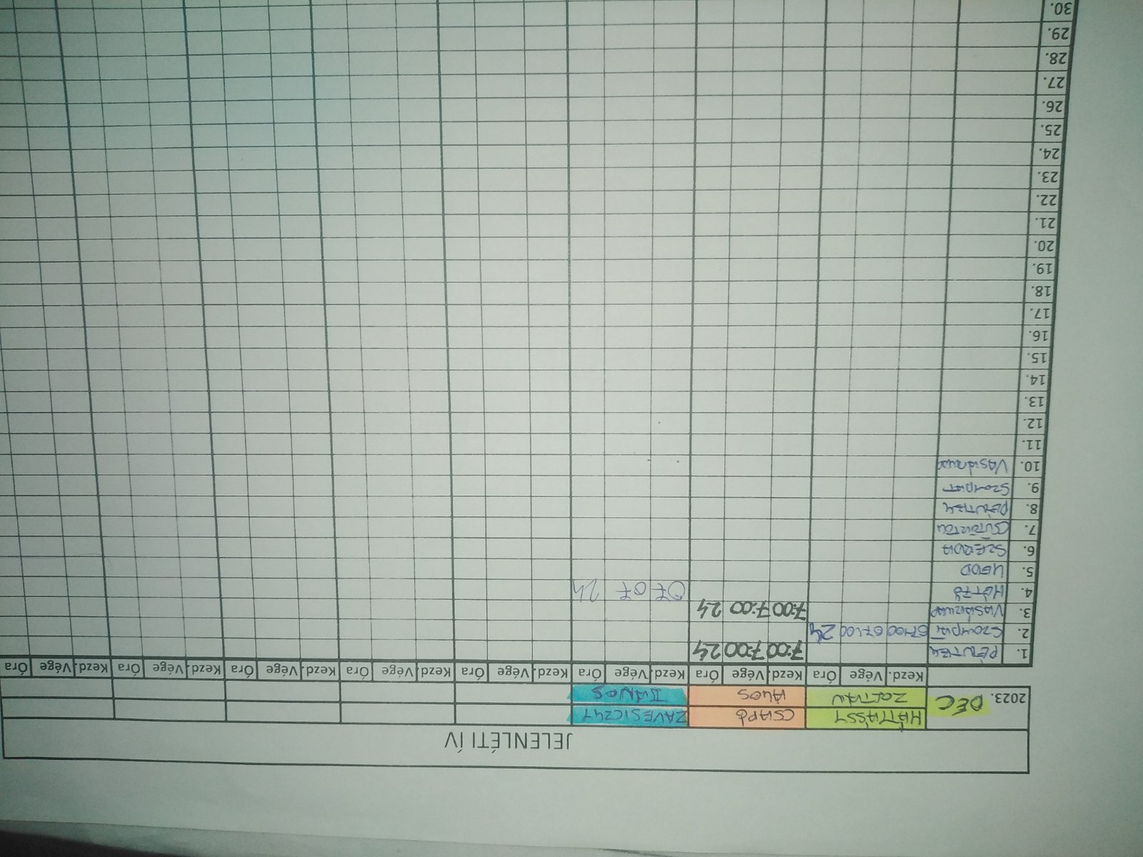 | A munkaidő nyilvántartás (jelenléti ív) vezetése | Megfelel |
