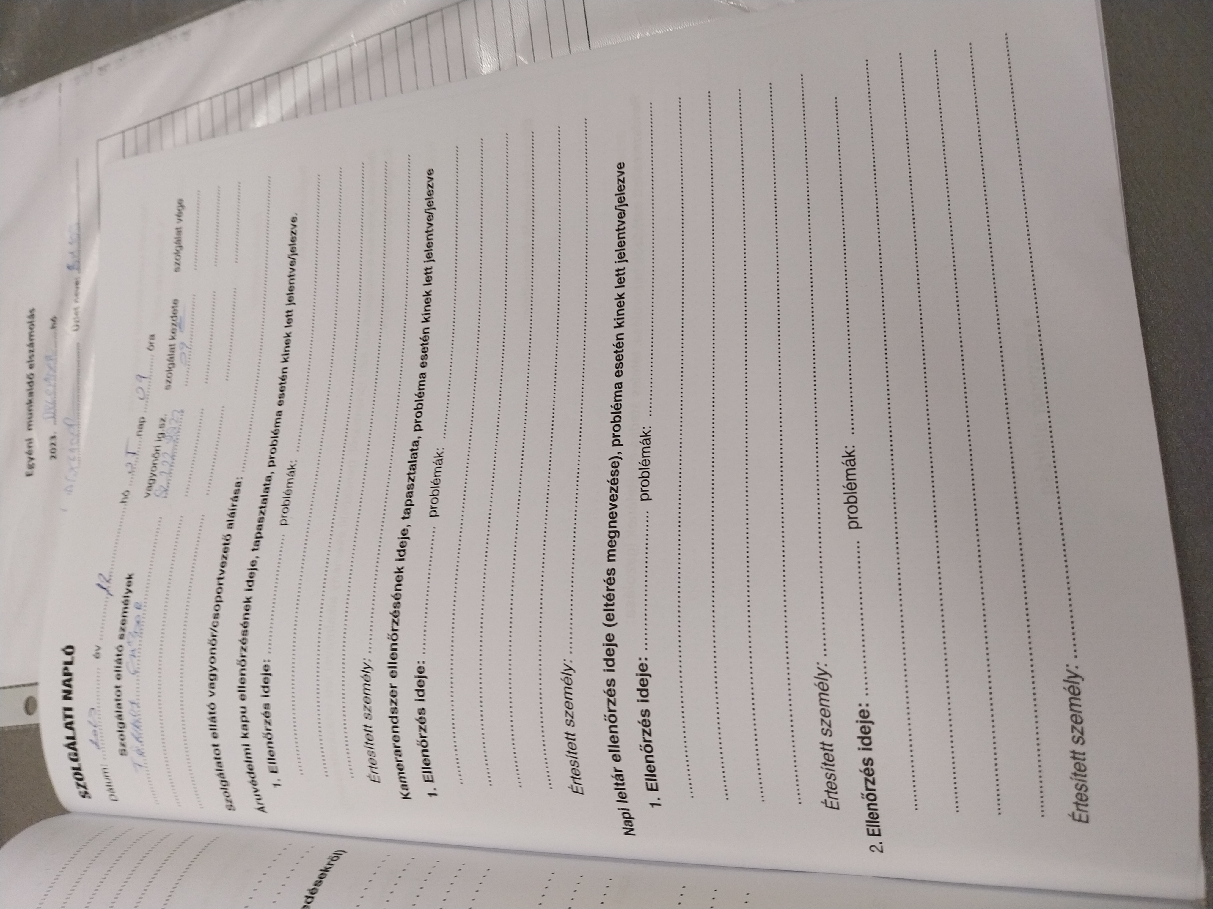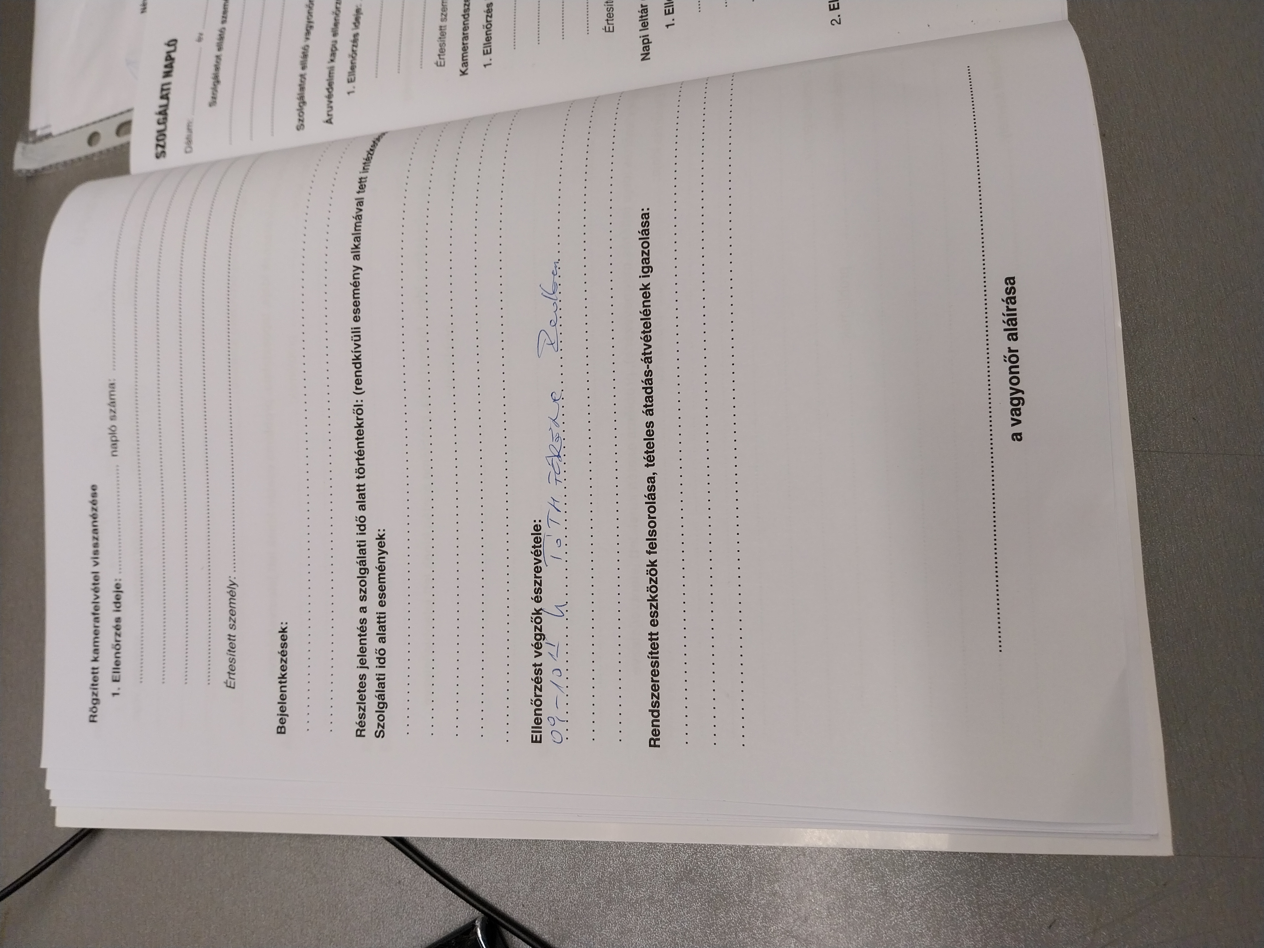 | Az őrzési helyre kiadott munkaeszközök megléte | Megfelel |