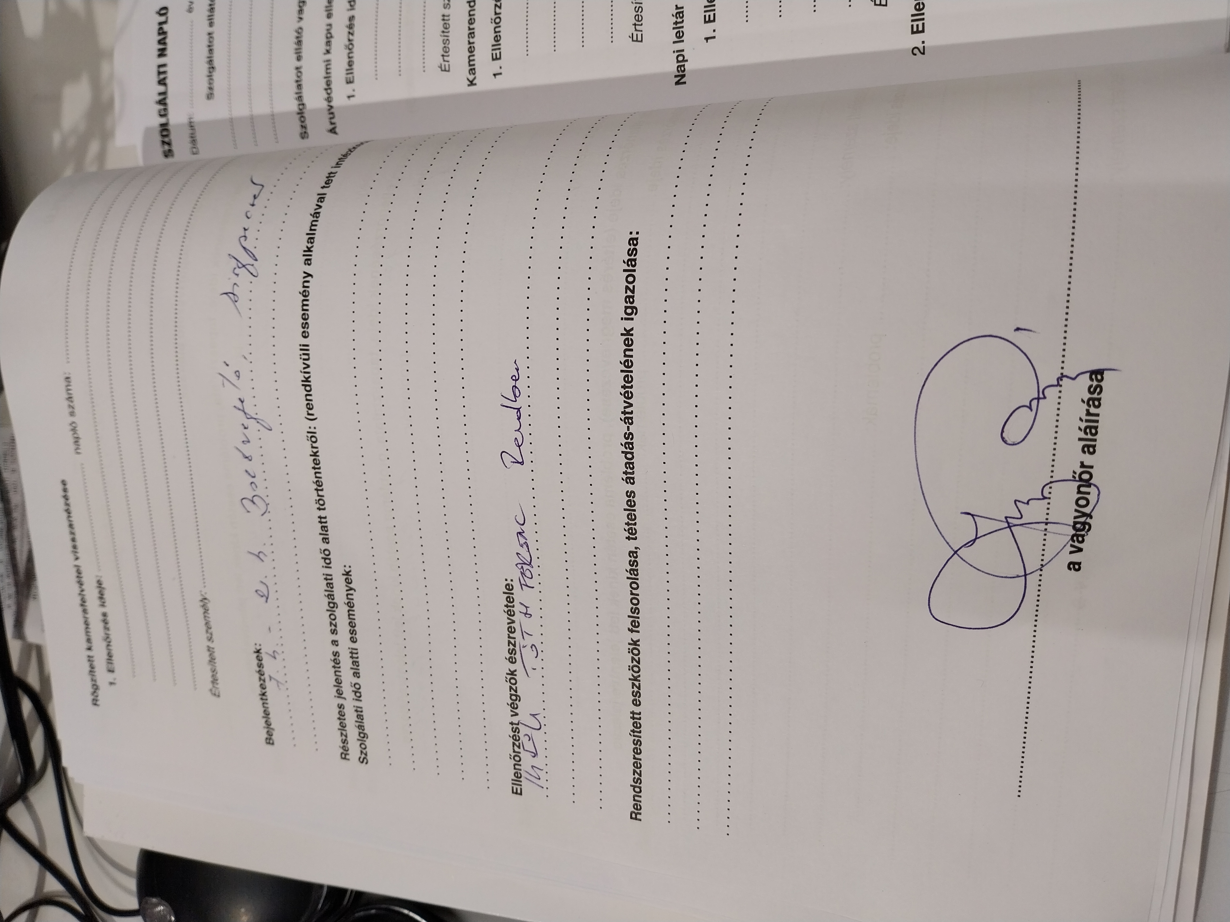 | Az őrzési helyre kiadott munkaeszközök megléte | Megfelel |