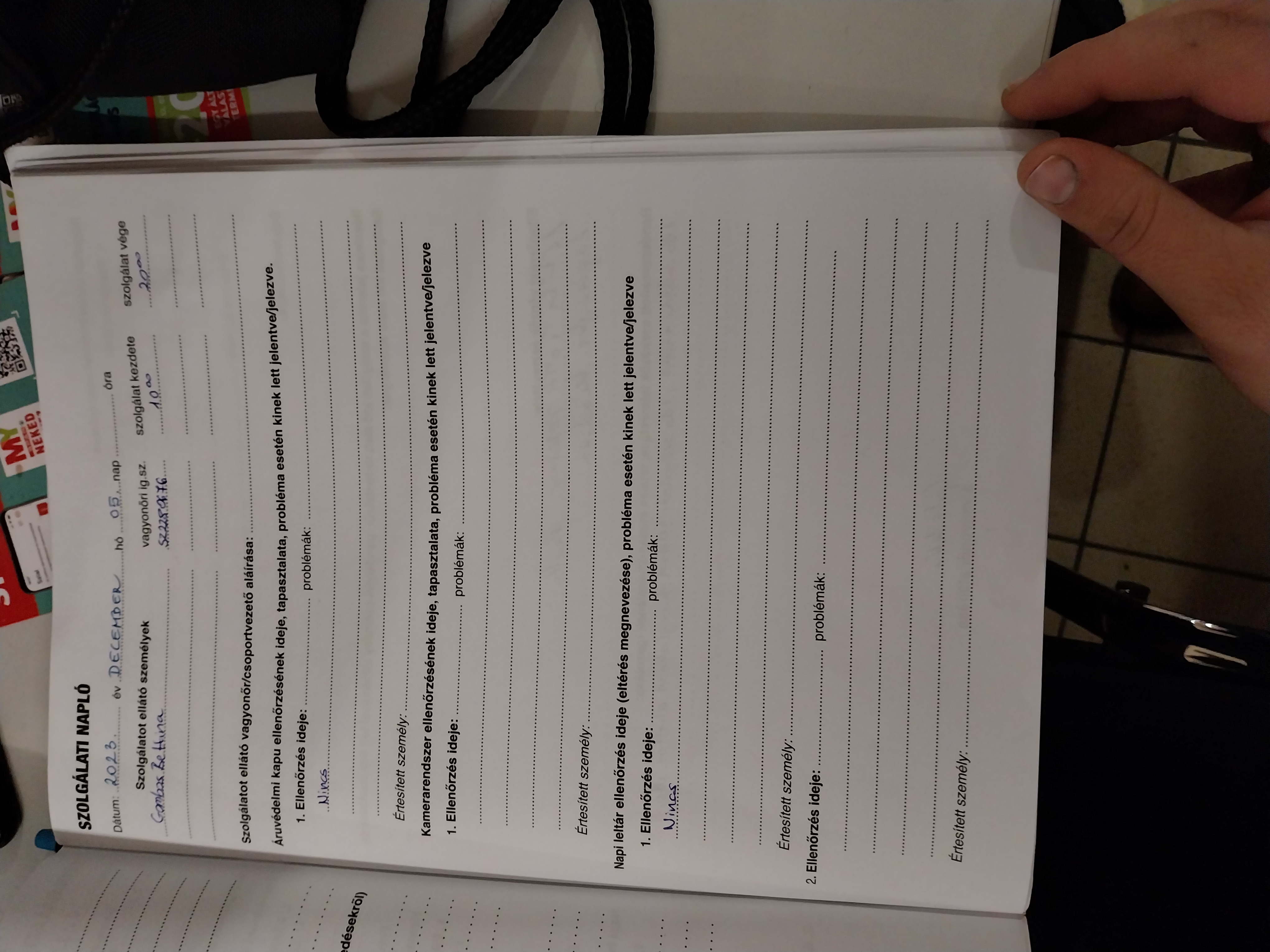 | Az őrzési helyre kiadott munkaeszközök megléte | Megfelel |