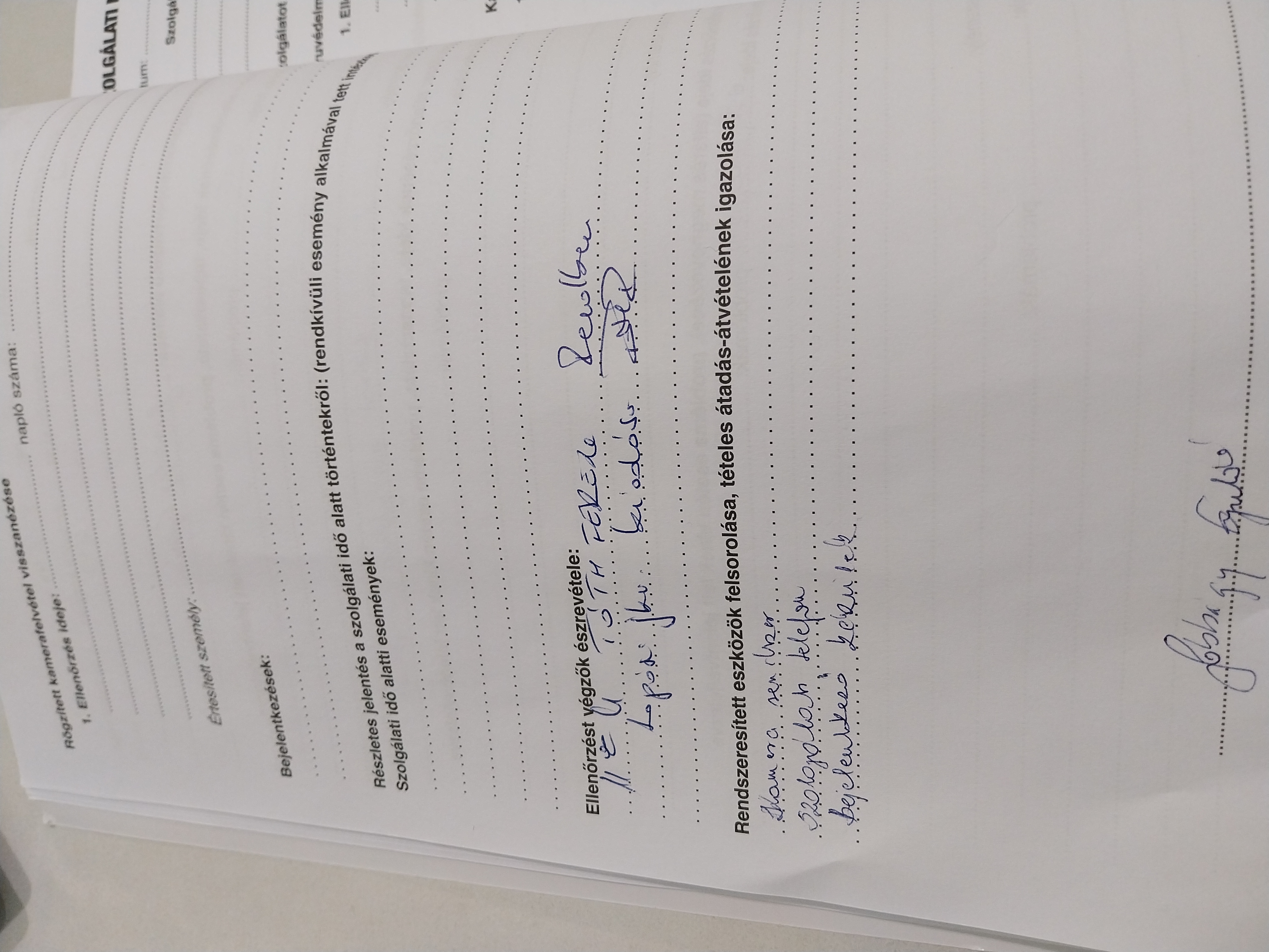 | Az őrzési helyre kiadott munkaeszközök megléte | Megfelel |