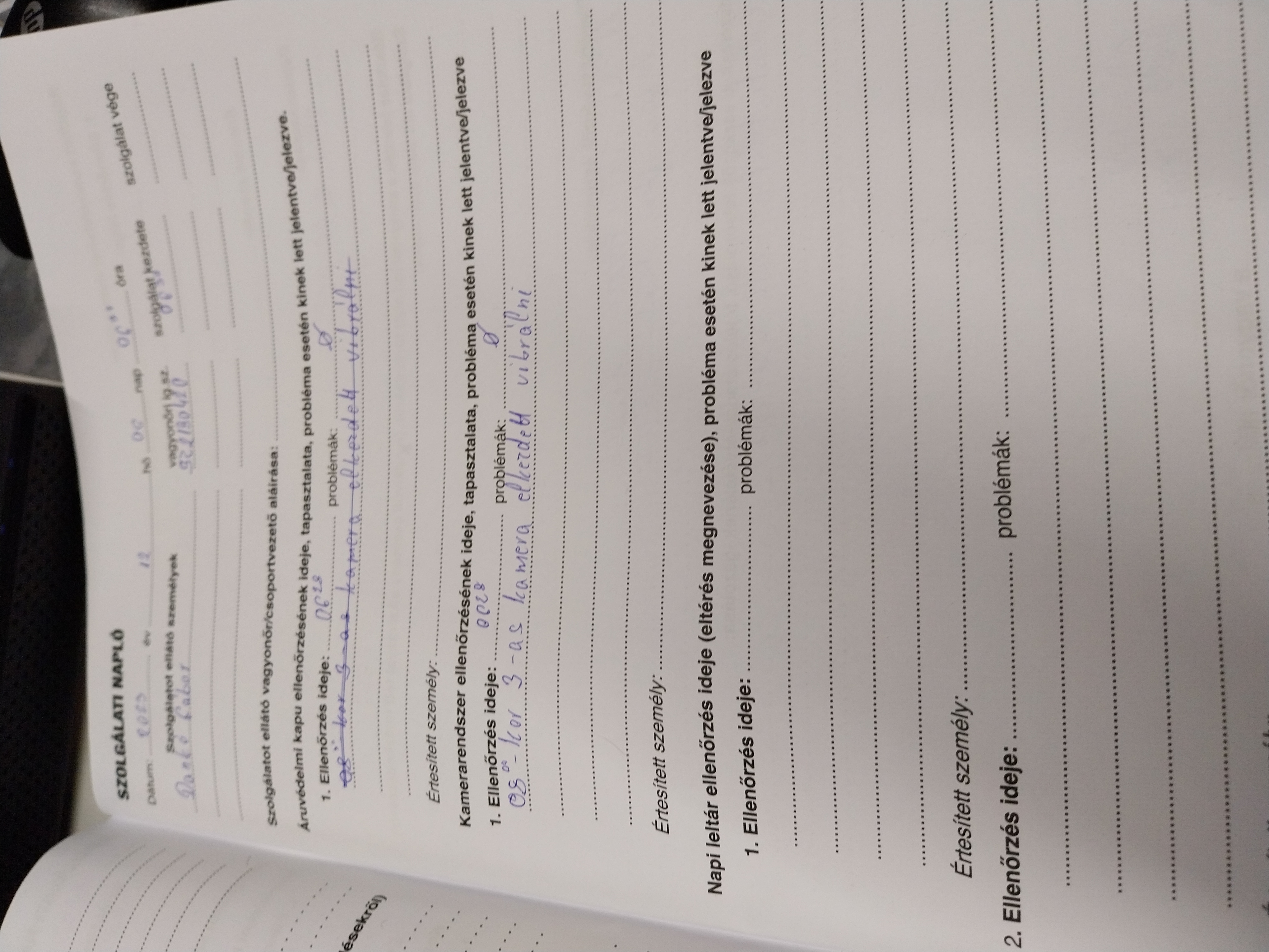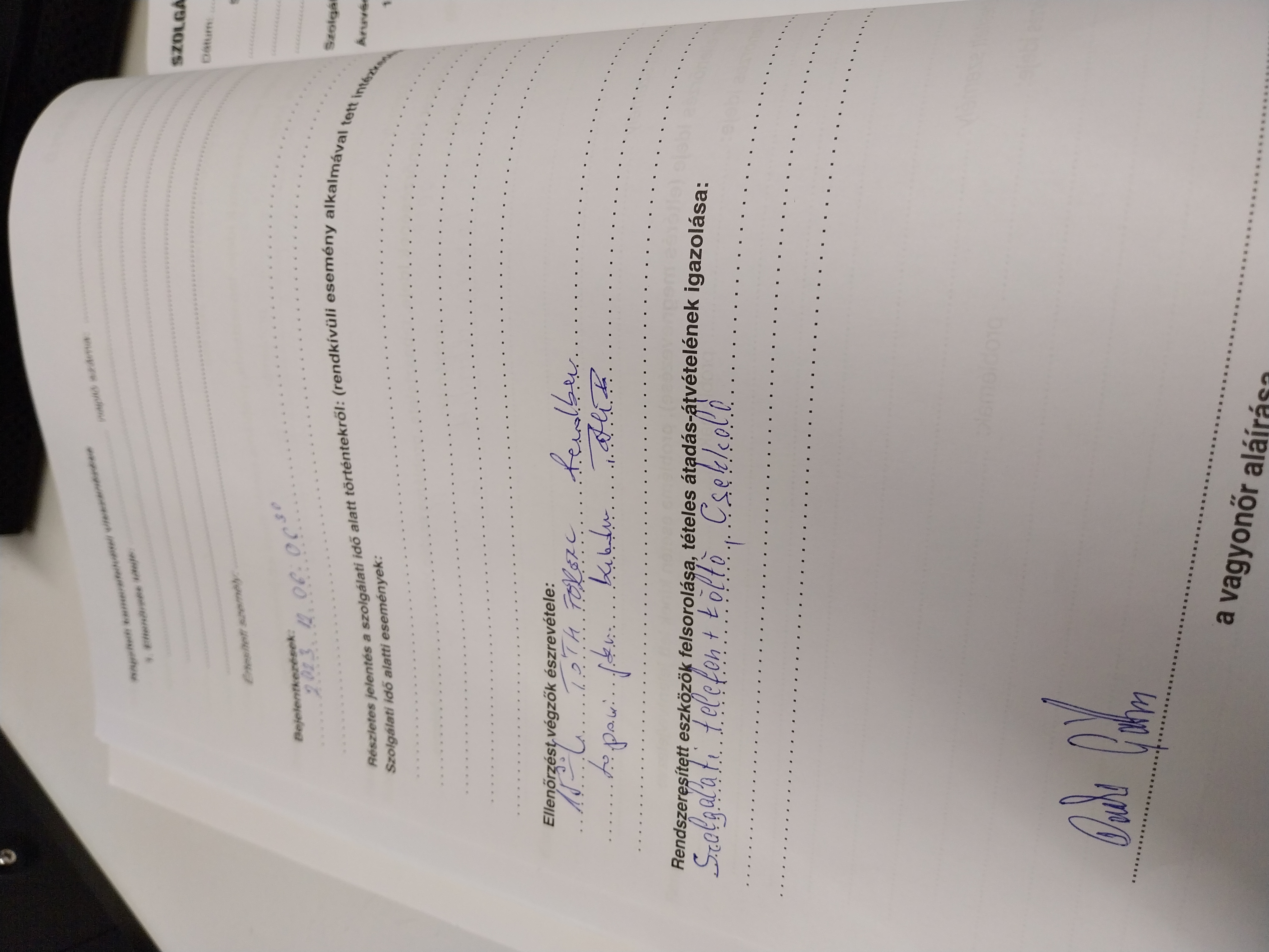 | Az őrzési helyre kiadott munkaeszközök megléte | Megfelel |