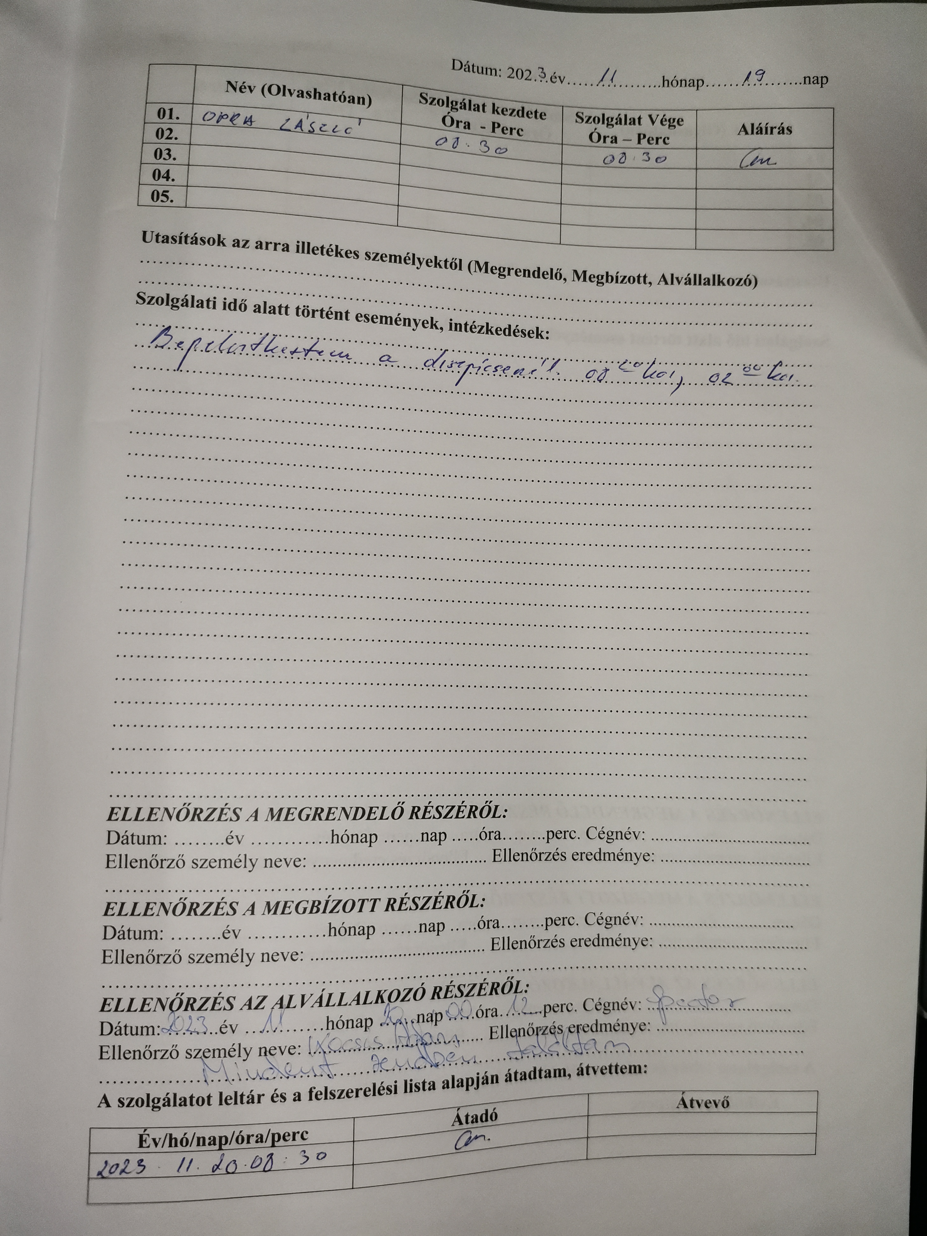 | Történt az ellenőrzéshez kapcsolódóan oktatás? | Nem |