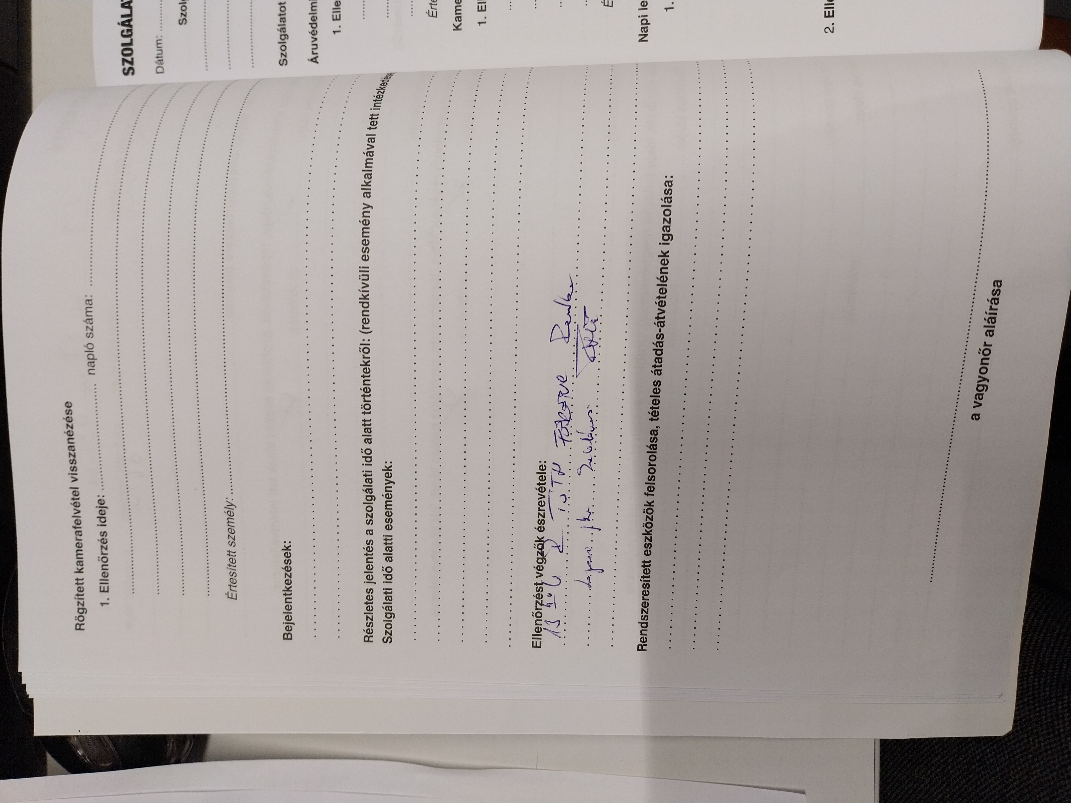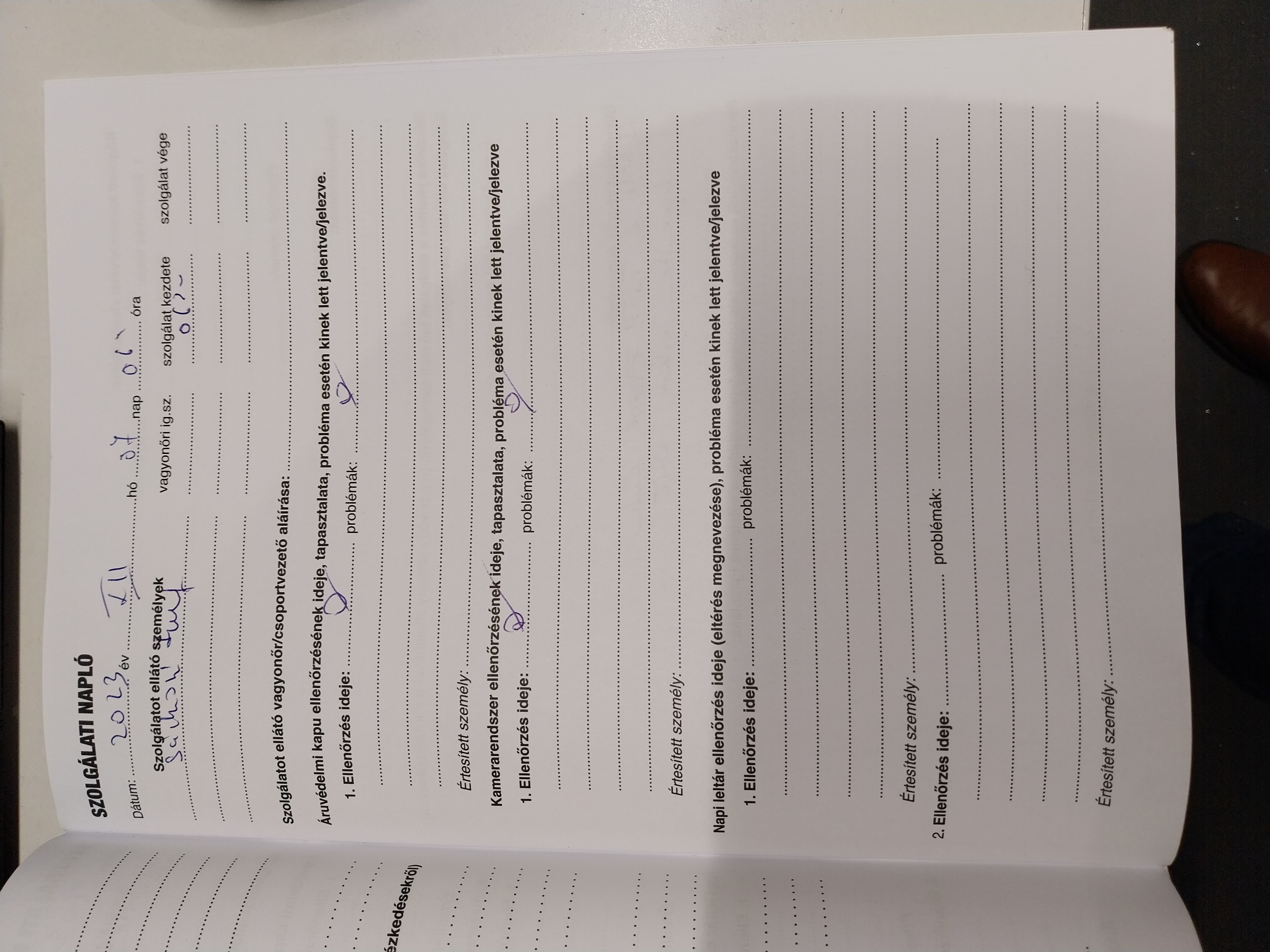 | Az őrzési helyre kiadott munkaeszközök megléte | Megfelel |