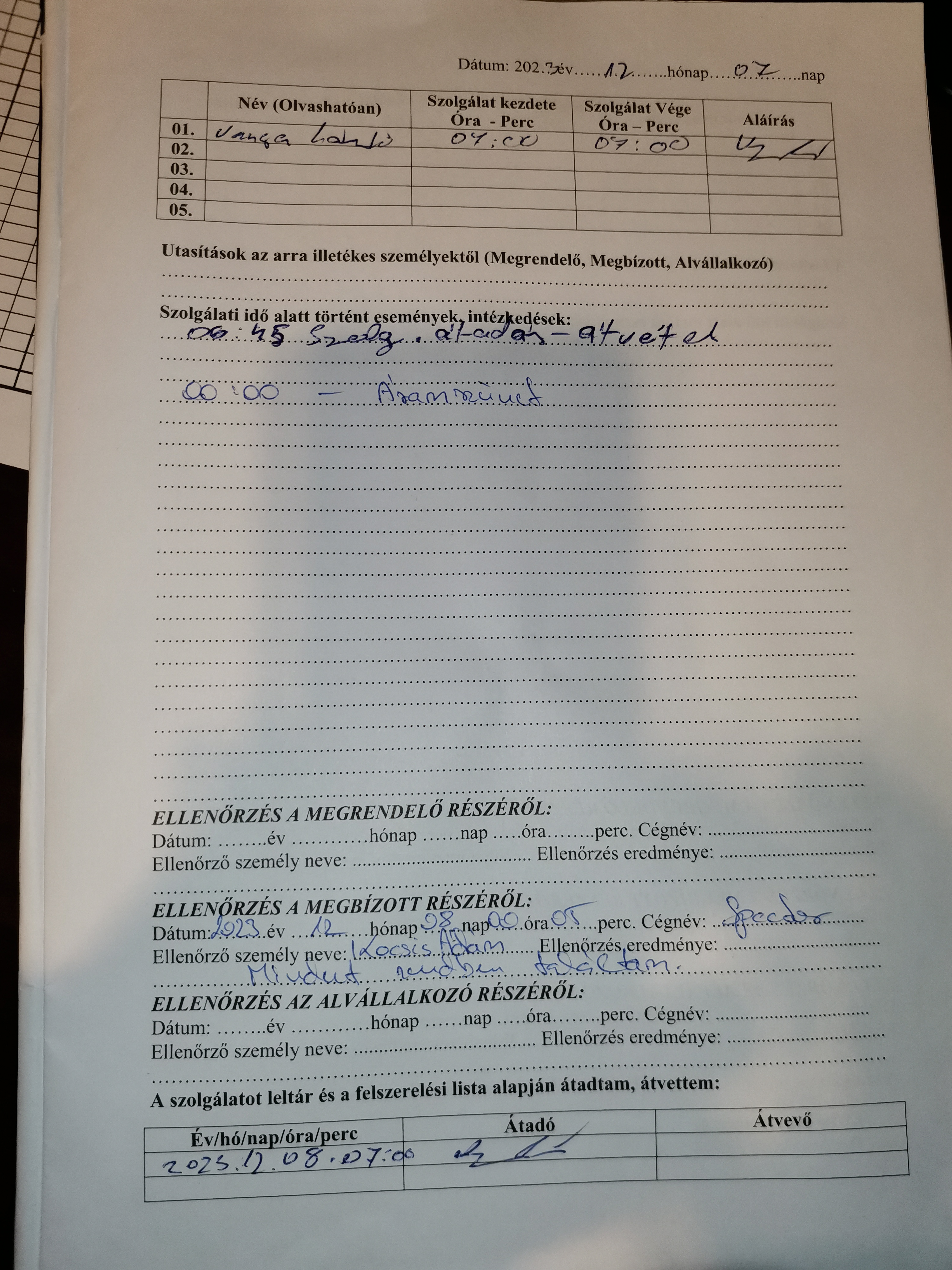 | Az őrhelyre kötelezően előírt oktatások igazolásának megléte | Nem releváns |