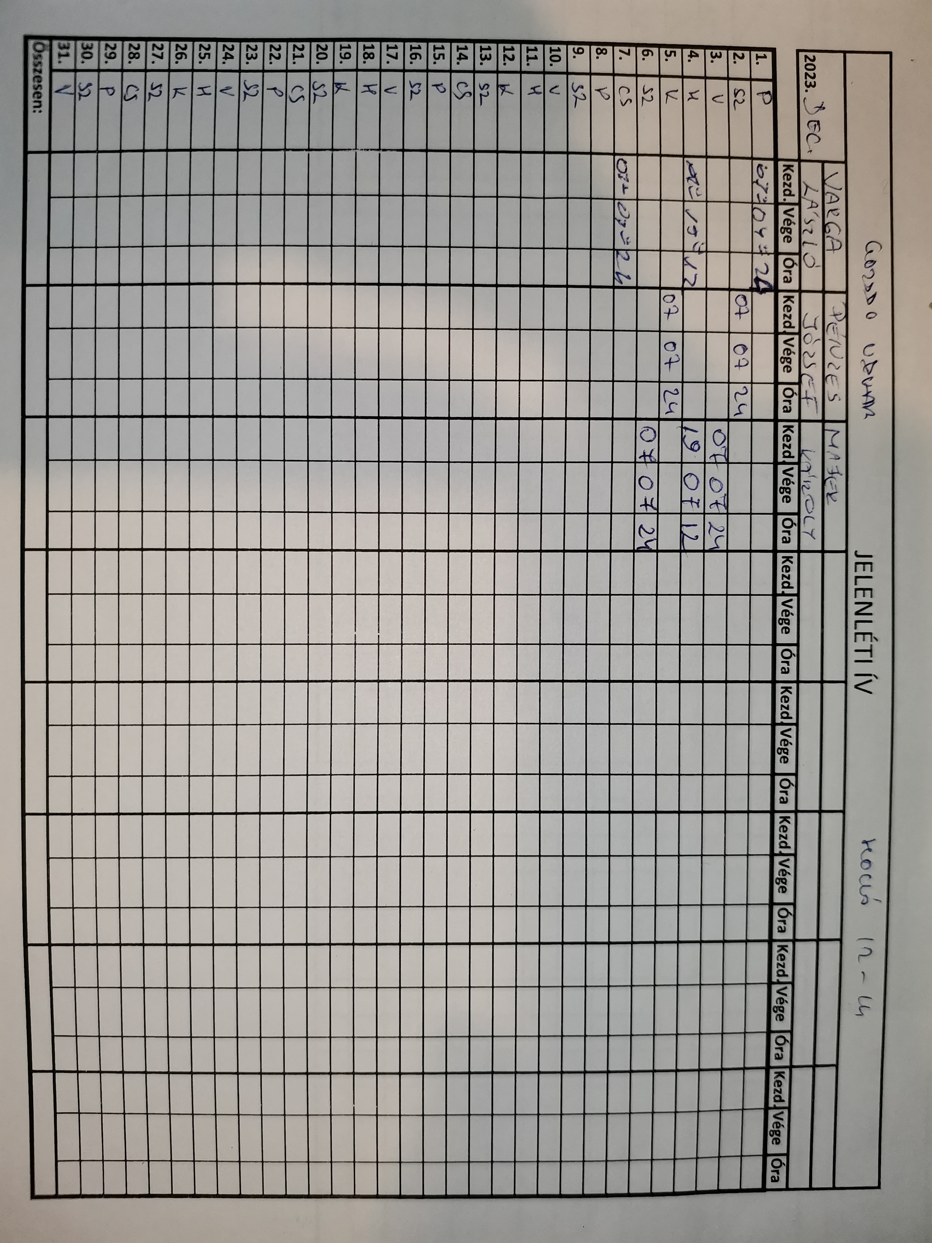 | A munkaidő nyilvántartás (jelenléti ív) vezetése | Megfelel |