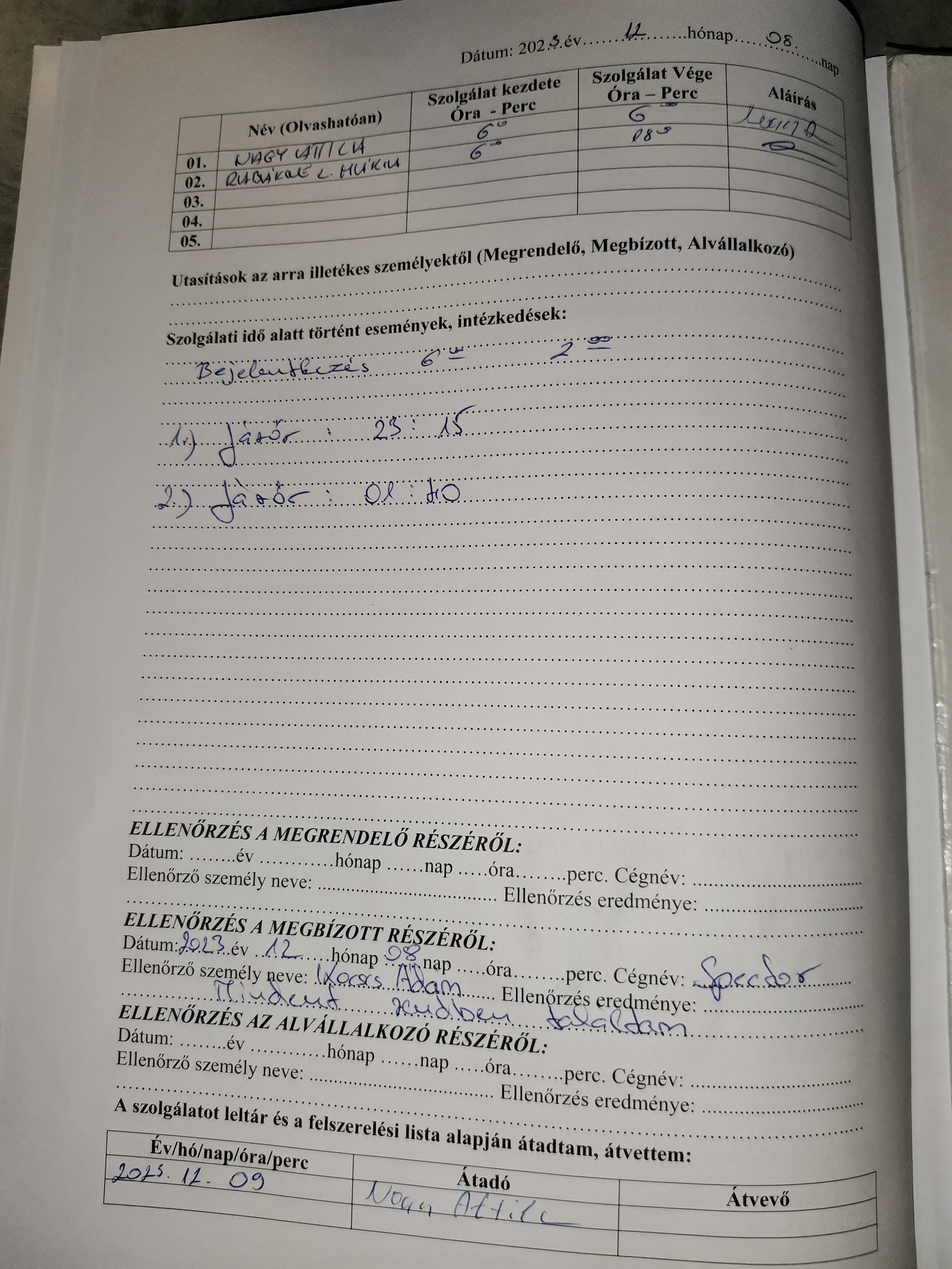 | Az őrhelyre kötelezően előírt oktatások igazolásának megléte | Megfelel |