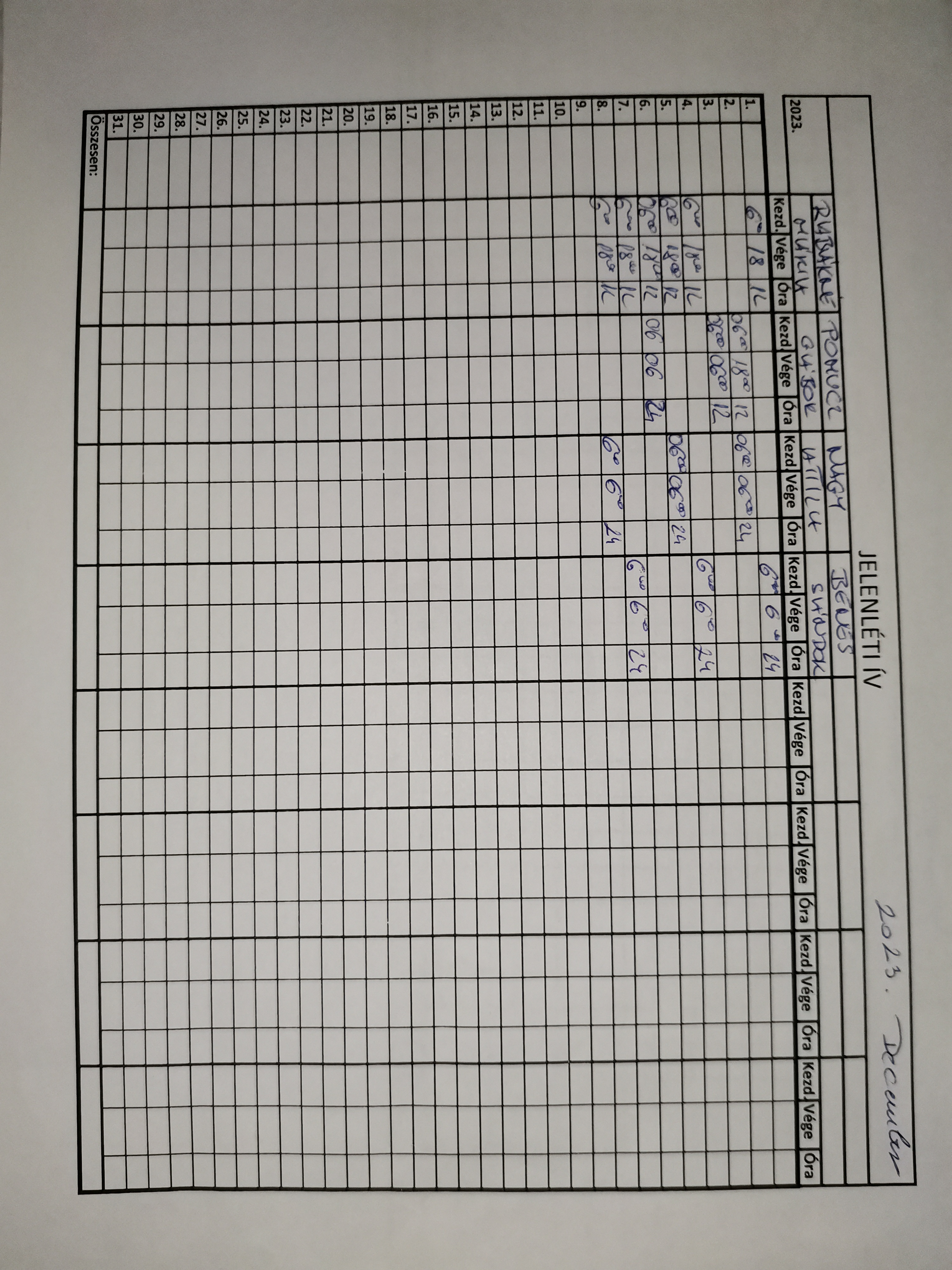 | A munkaidő nyilvántartás (jelenléti ív) vezetése | Megfelel |