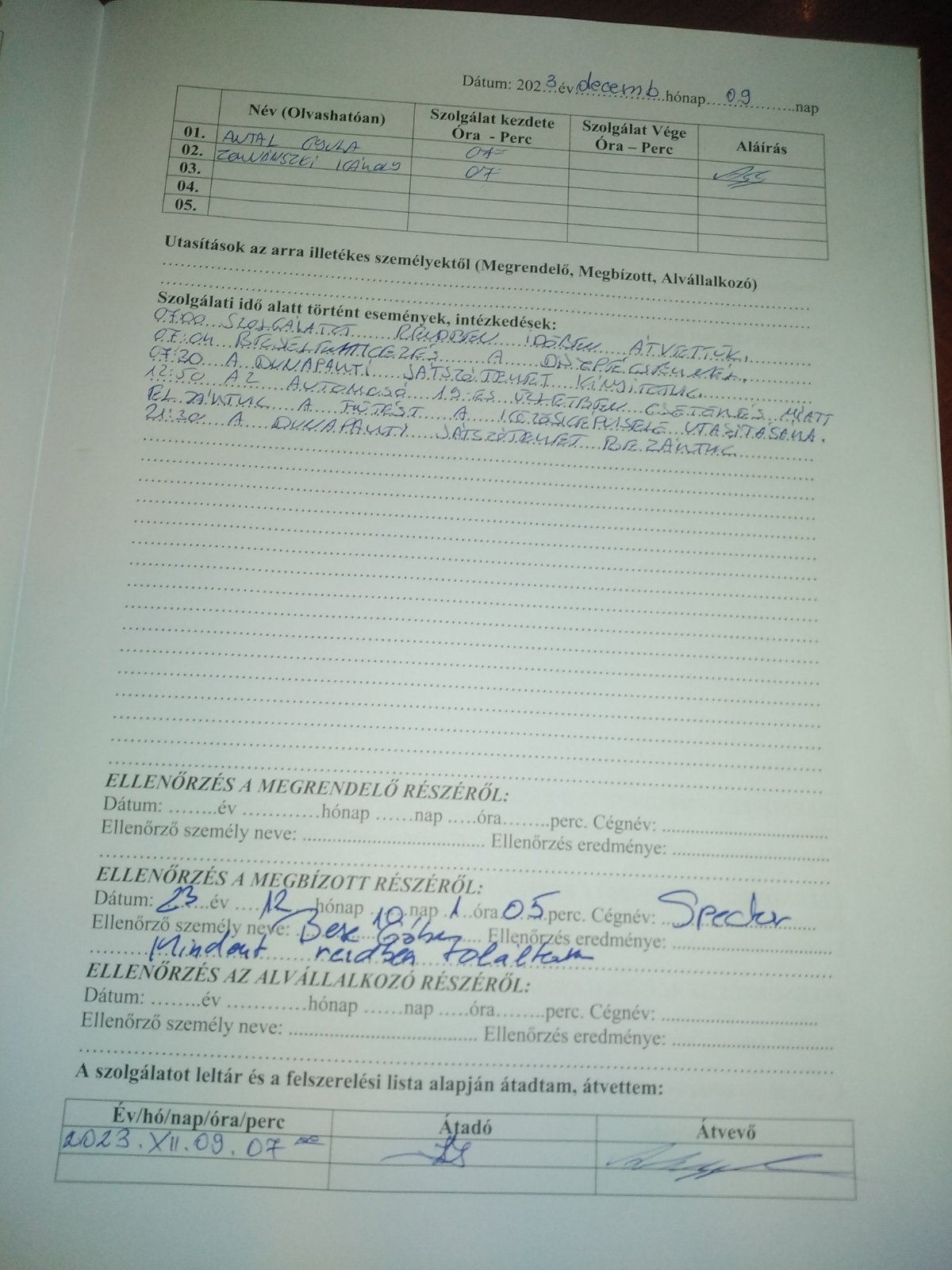 | Az őrhelyre kötelezően előírt oktatások igazolásának megléte | Nem releváns |