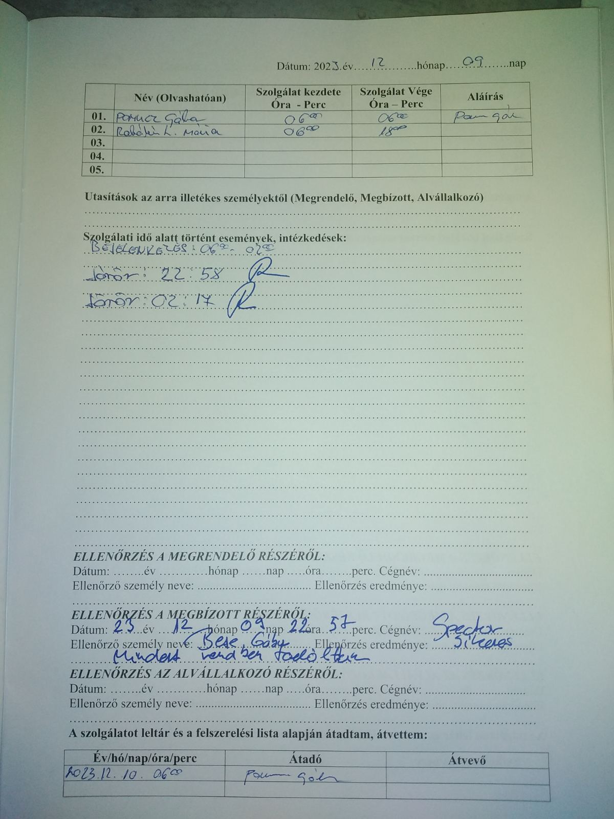 | Az őrhelyre kötelezően előírt oktatások igazolásának megléte | Megfelel |