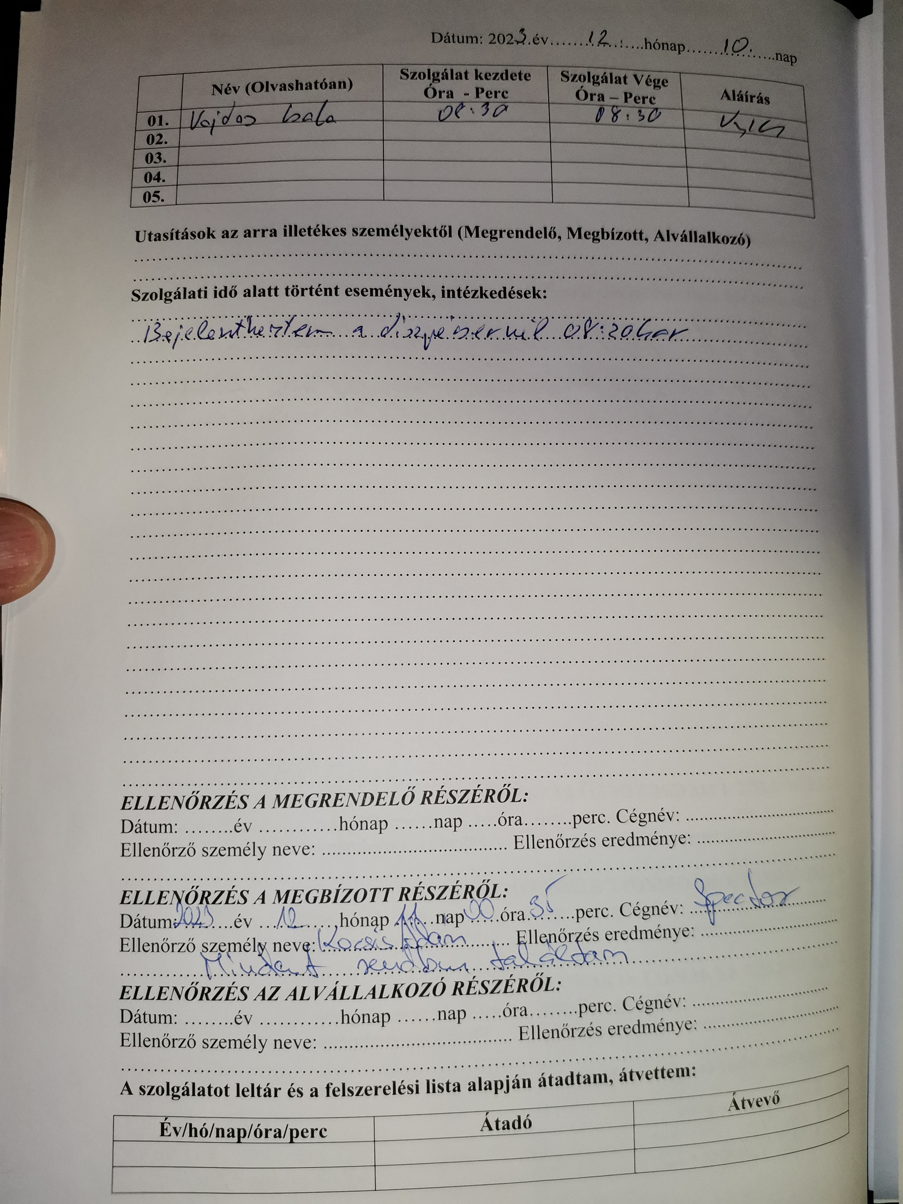 | Az ellenőrzött személy neve | Vajdos Csaba |