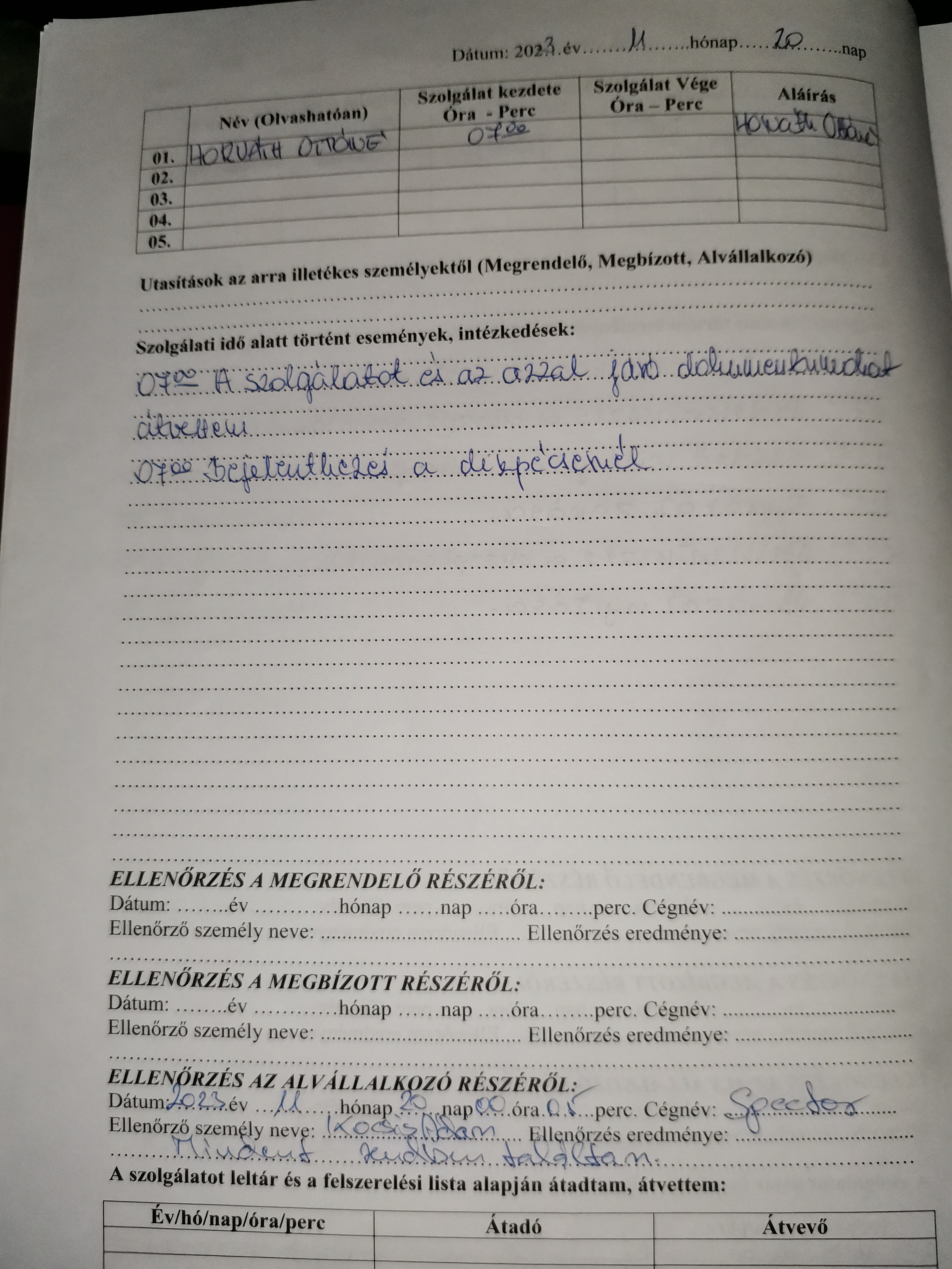 | Van-e az ellenőrzött személynek egyéb észrevétele, javaslata? | Nem |