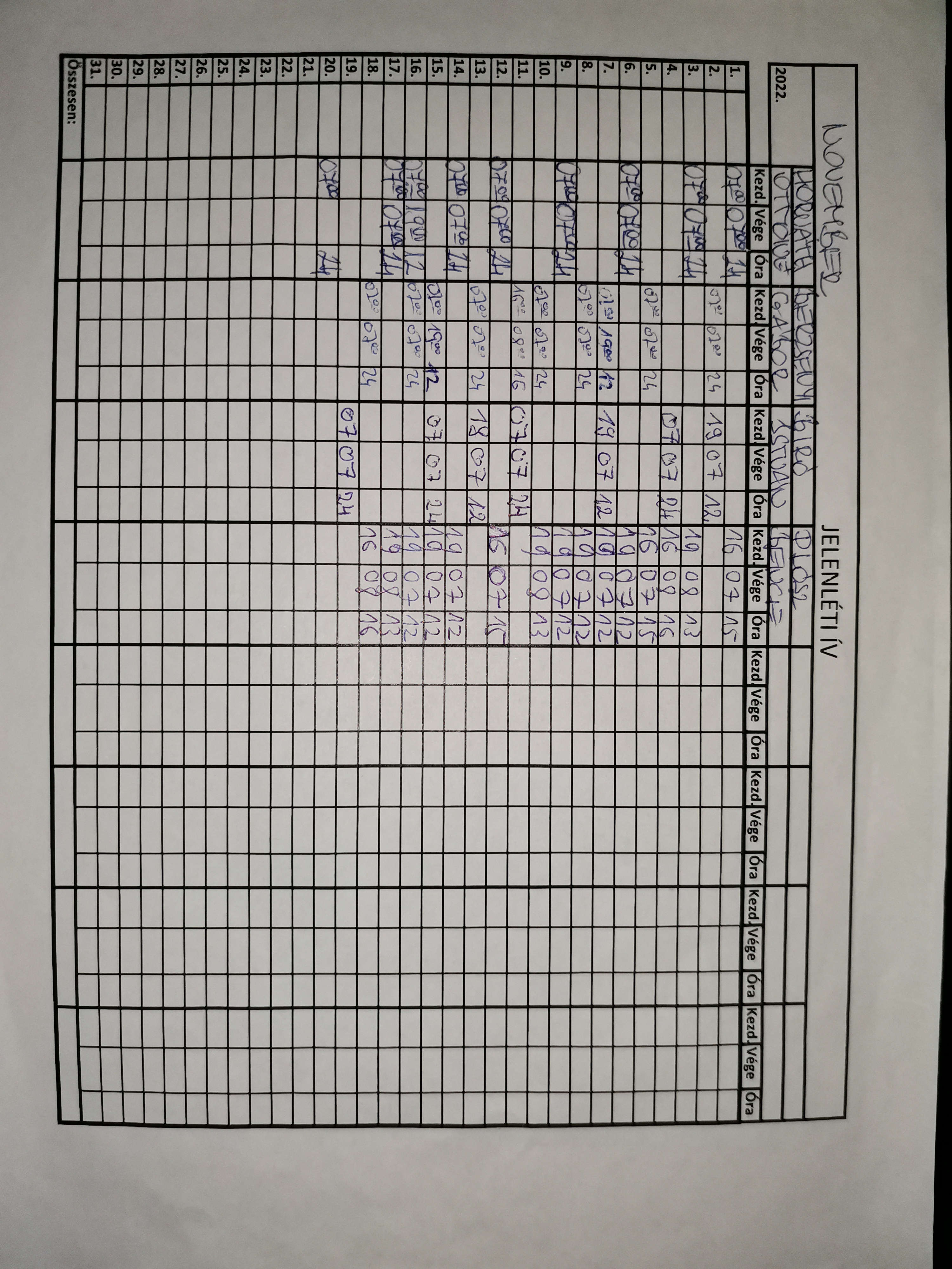| A munkaidő nyilvántartás (jelenléti ív) vezetése | Megfelel |