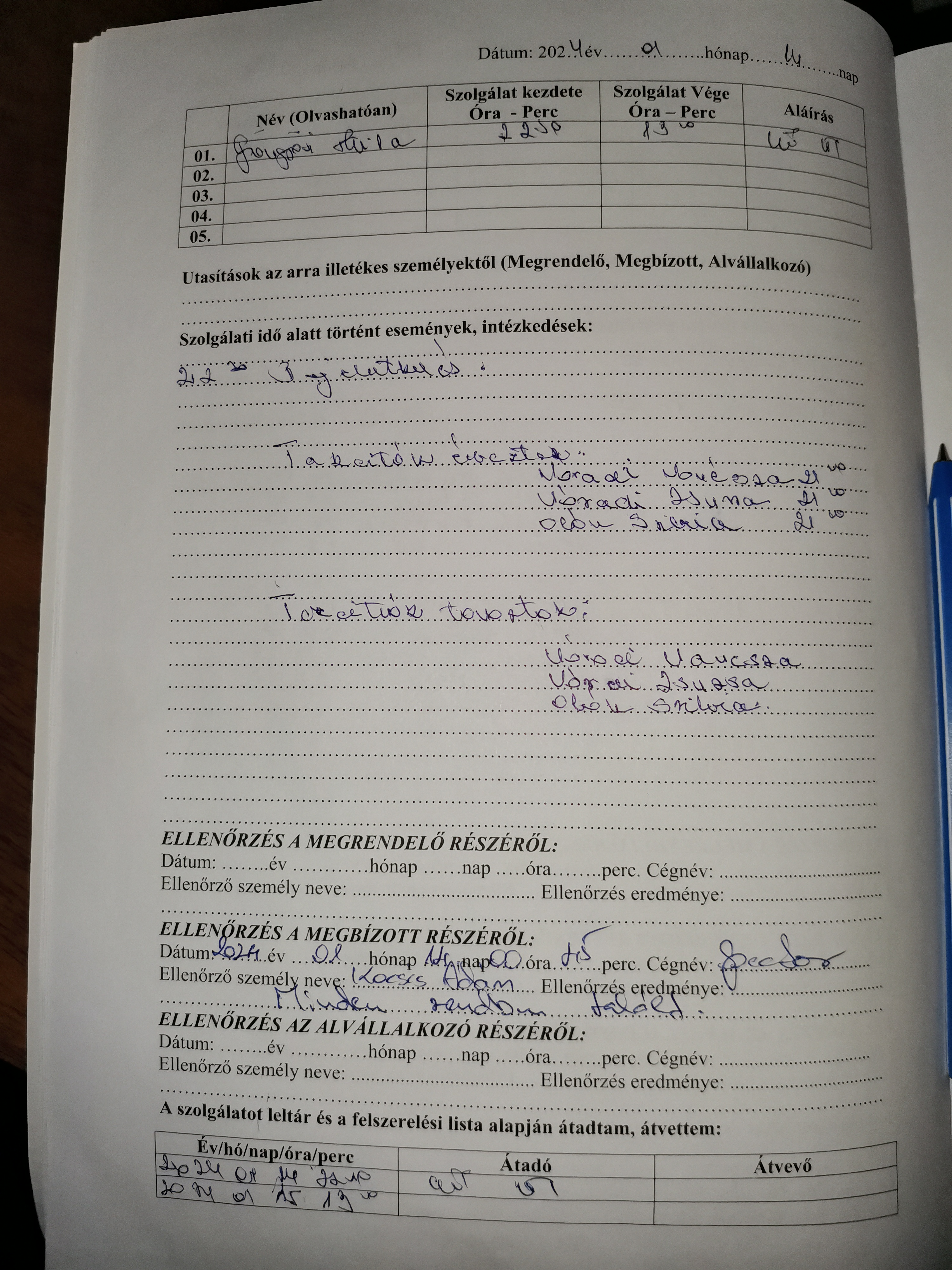 | Az őrhelyre kötelezően előírt oktatások igazolásának megléte | Nem releváns |