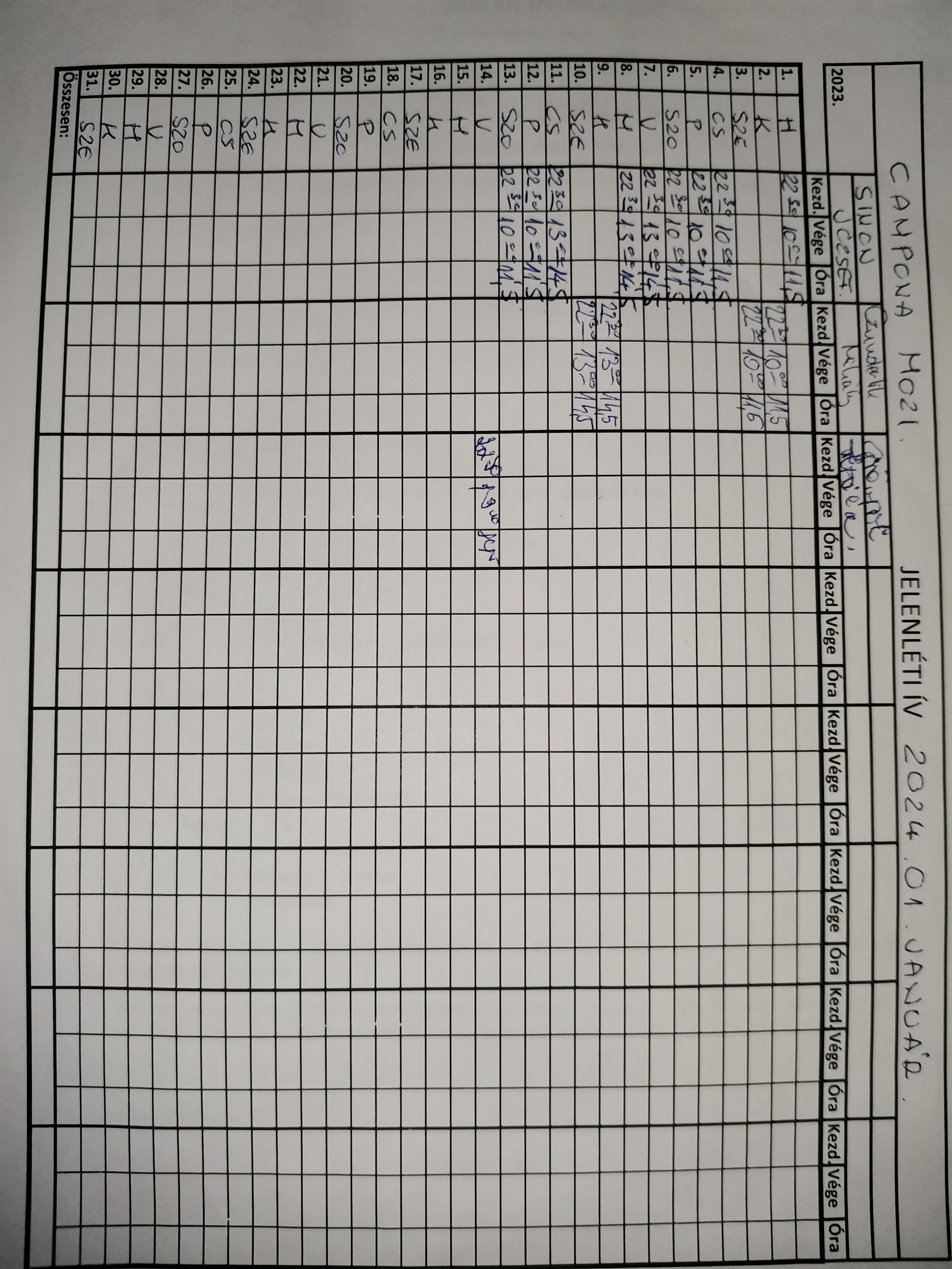 | A munkaidő nyilvántartás (jelenléti ív) vezetése | Megfelel |