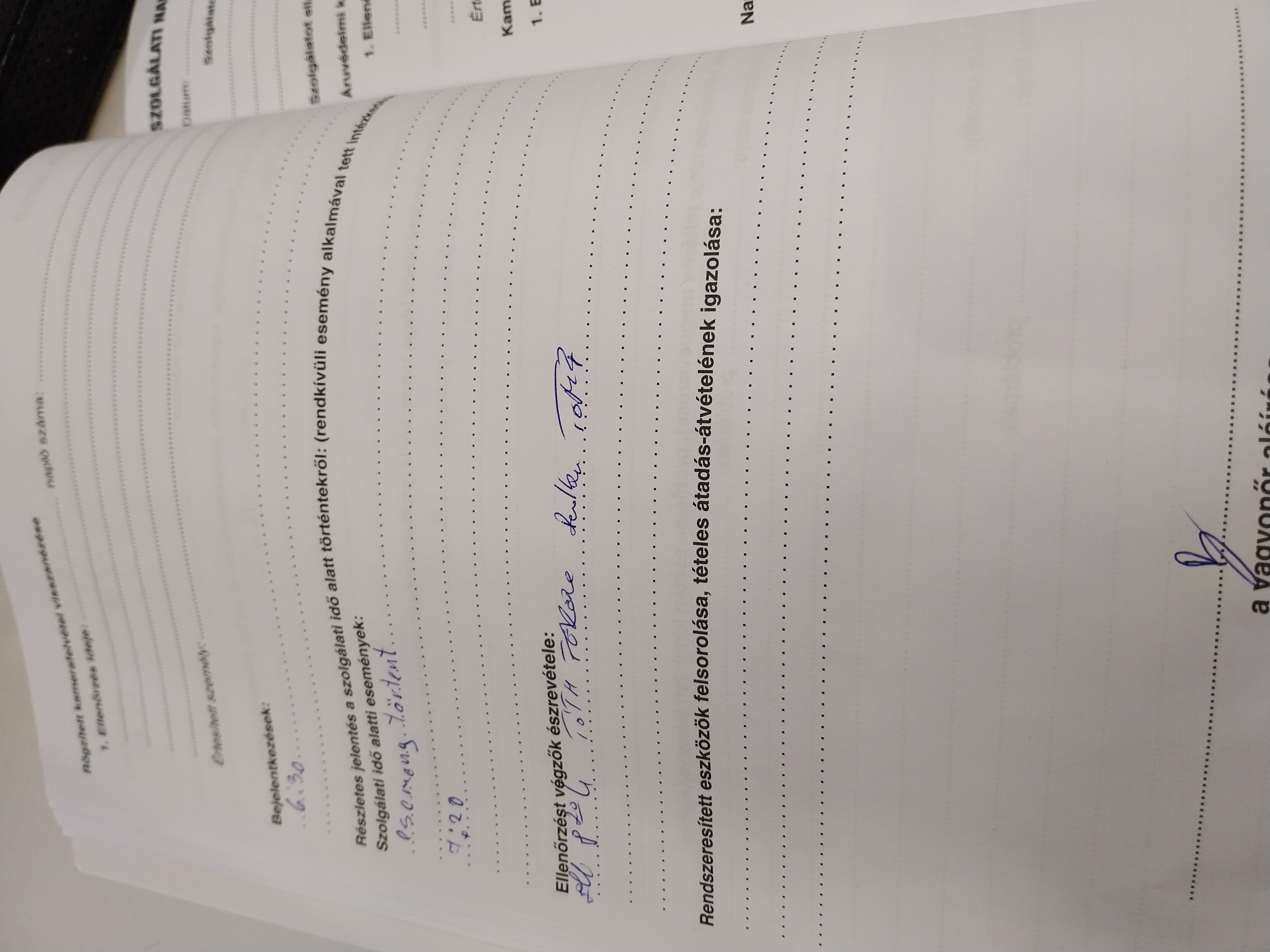 | Az előírt szolgálati okmányok rendelkezésre állása | Megfelel |