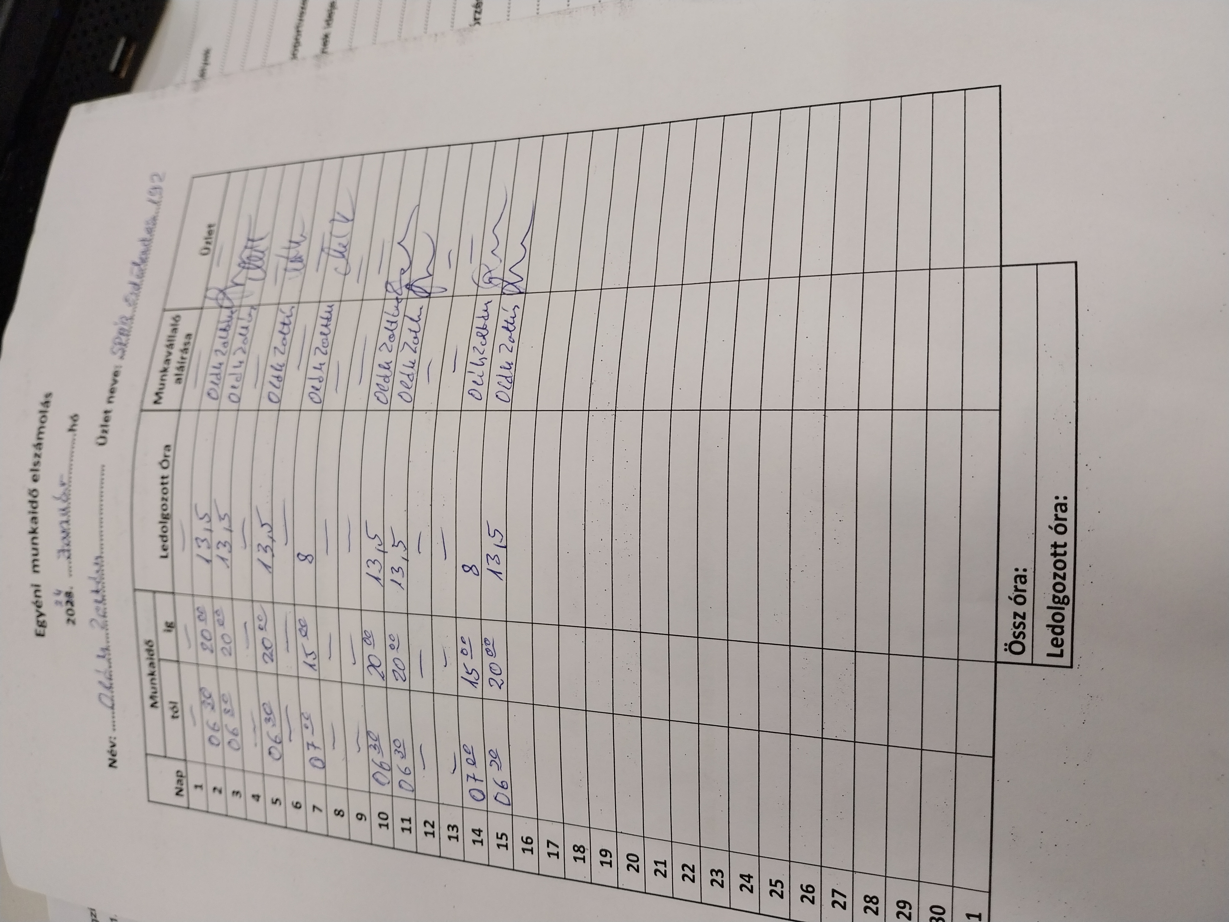| A munkaidő nyilvántartás (jelenléti ív) vezetése | Megfelel |
