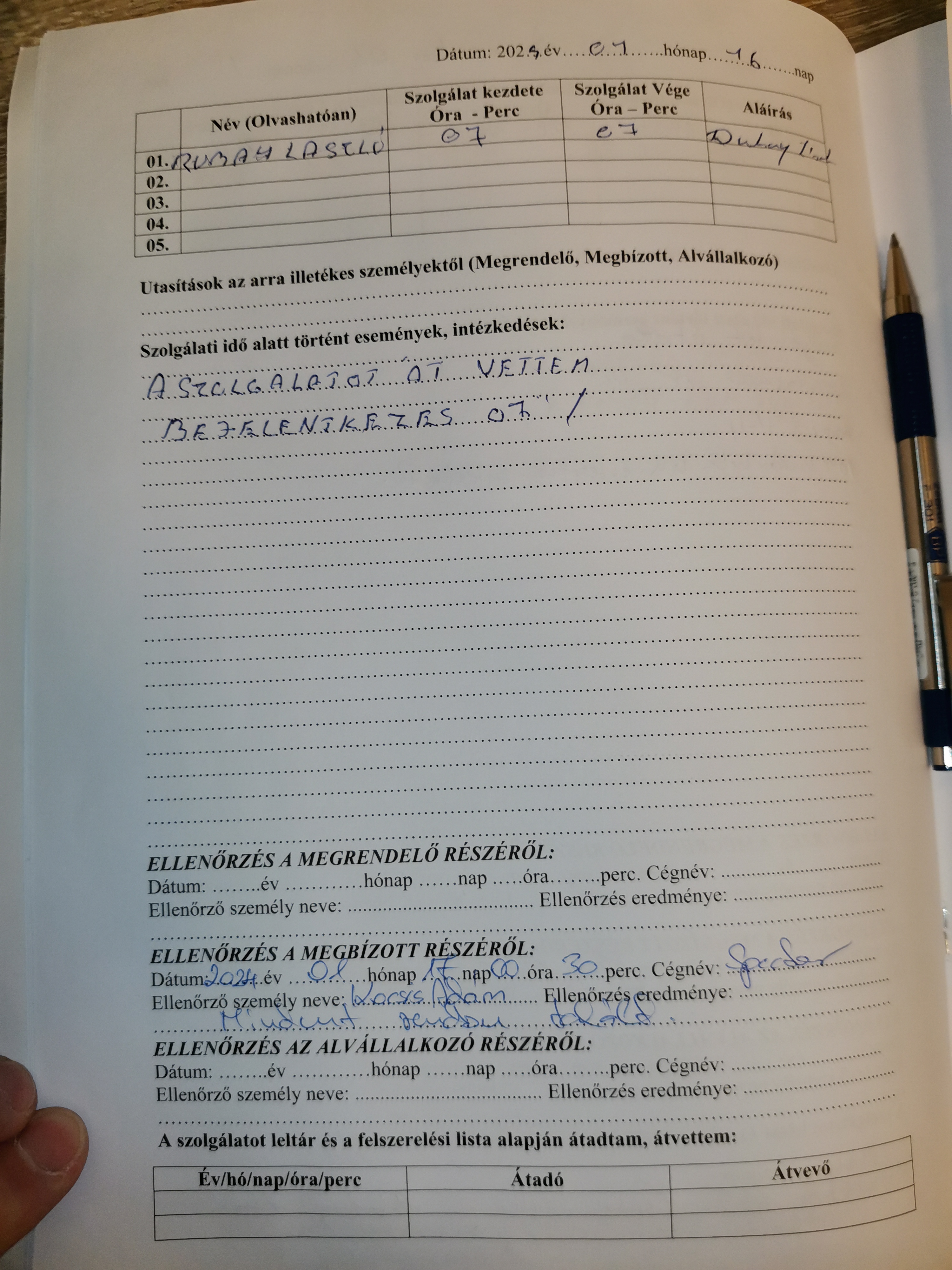 | Az őrhelyre kötelezően előírt oktatások igazolásának megléte | Nem releváns |