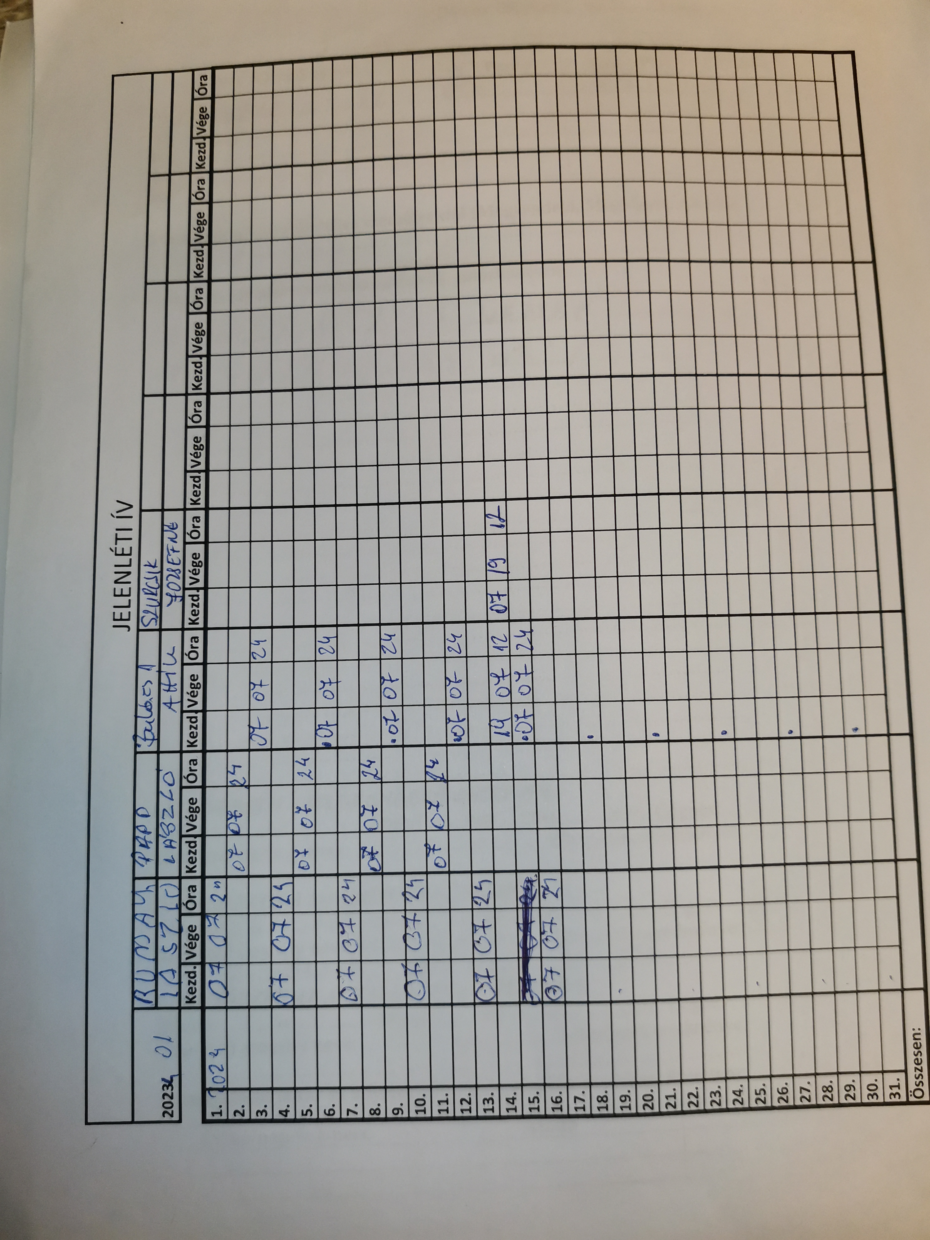 | A munkaidő nyilvántartás (jelenléti ív) vezetése | Megfelel |