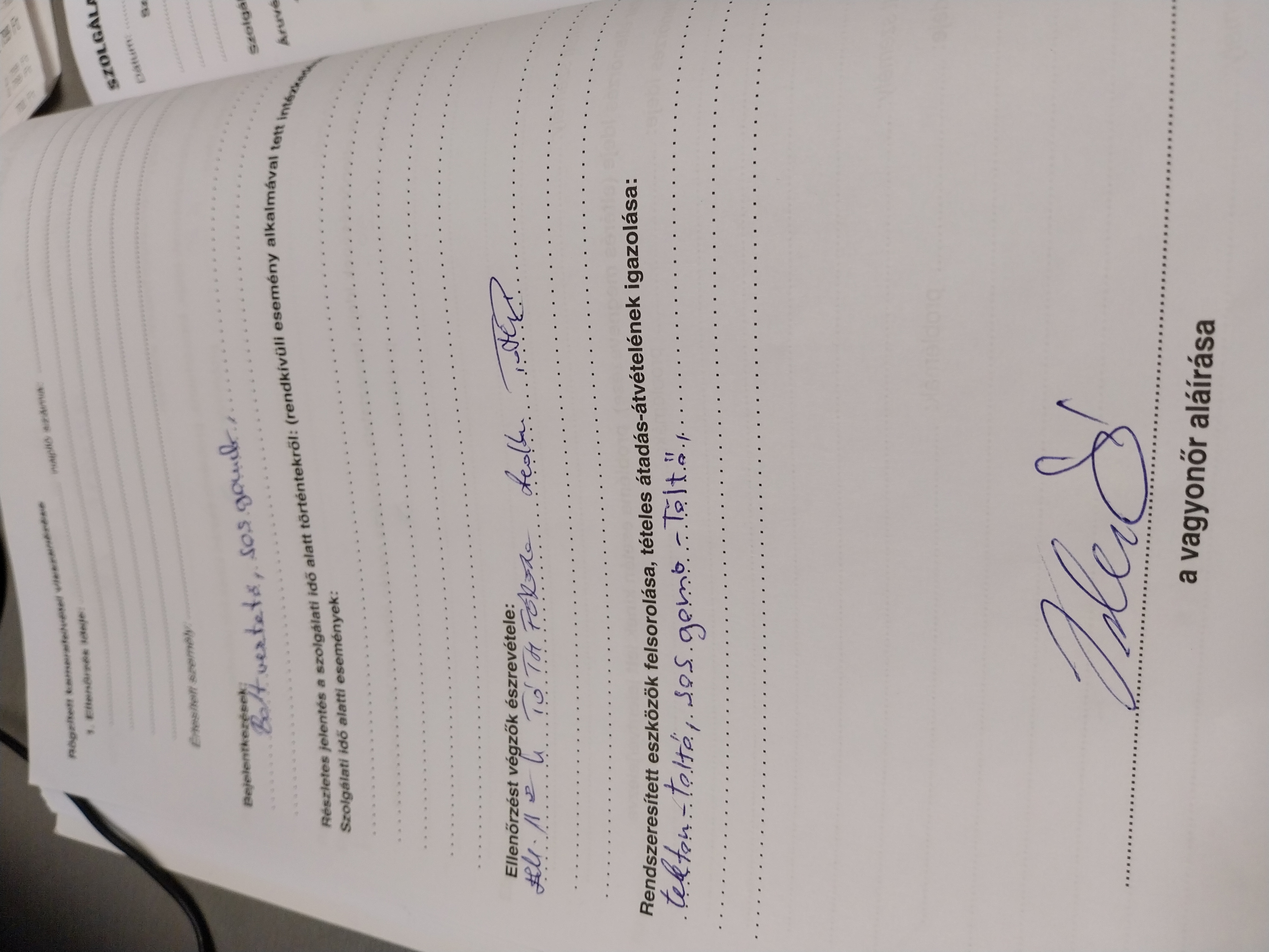 | Az őrzési helyre kiadott munkaeszközök megléte | Megfelel |