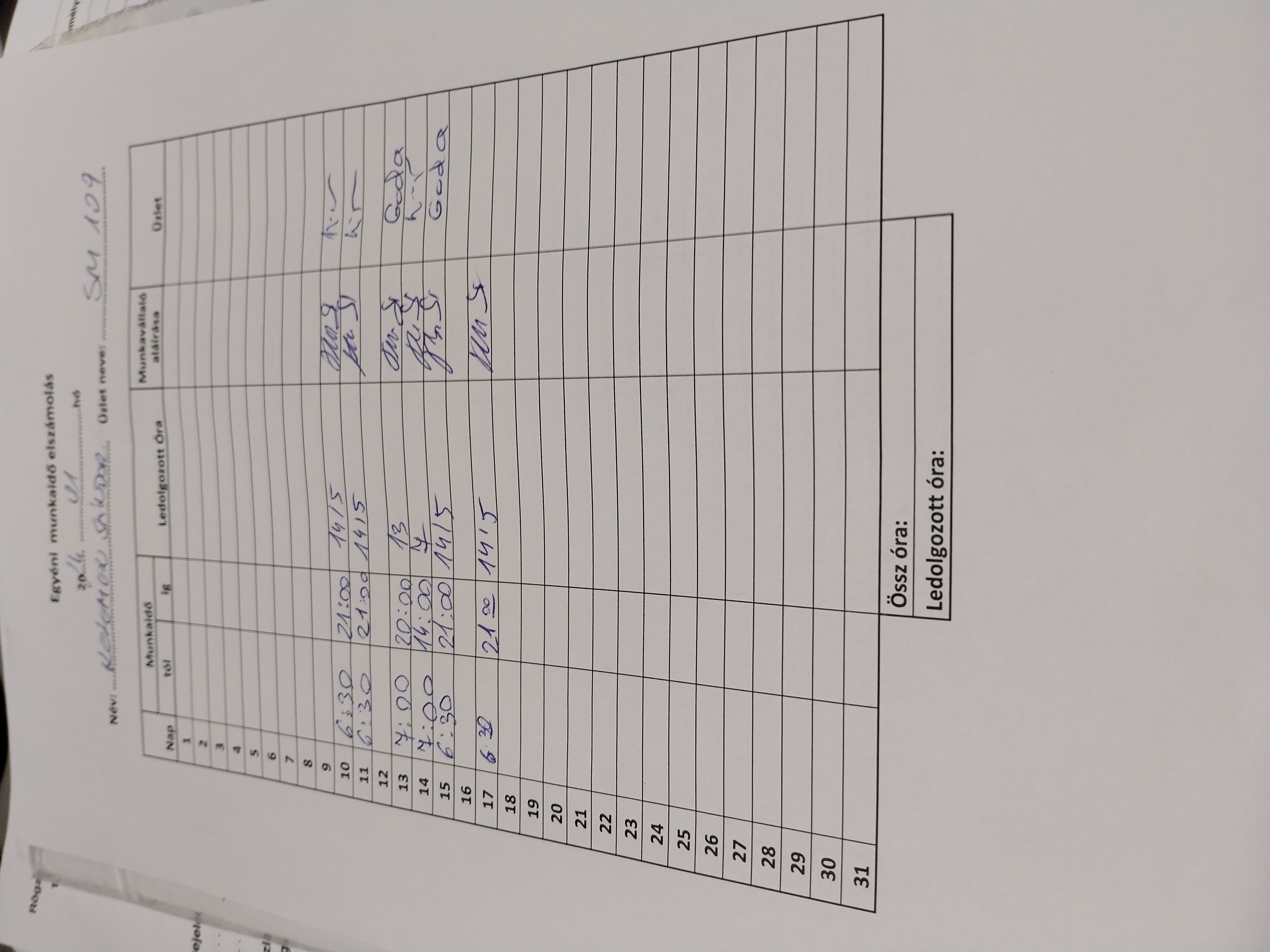 | A munkaidő nyilvántartás (jelenléti ív) vezetése | Megfelel |