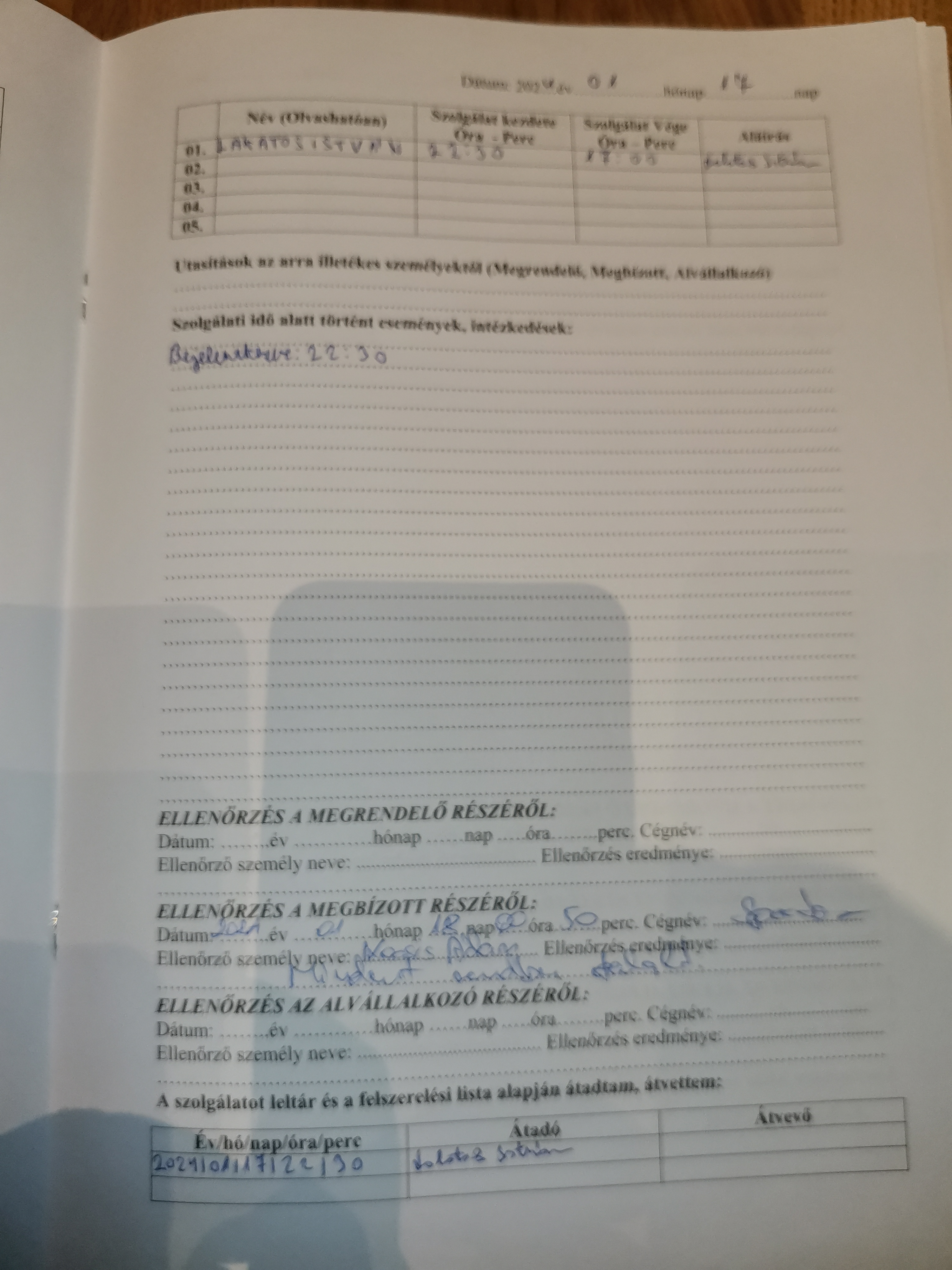 | Az ellenőrzött személy neve | Lakatos István |