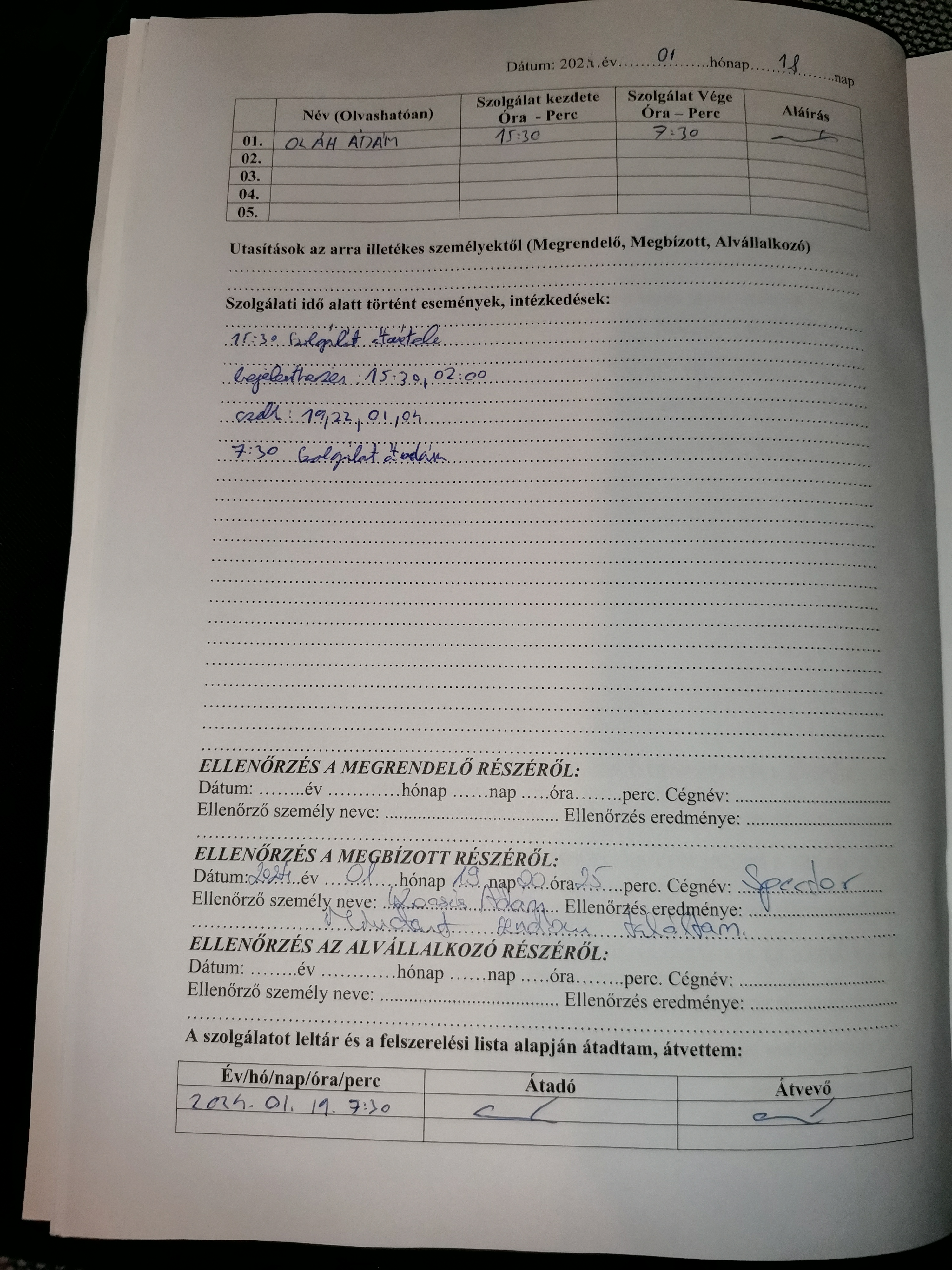 | Az őrhelyre kötelezően előírt oktatások igazolásának megléte | Nem releváns |
