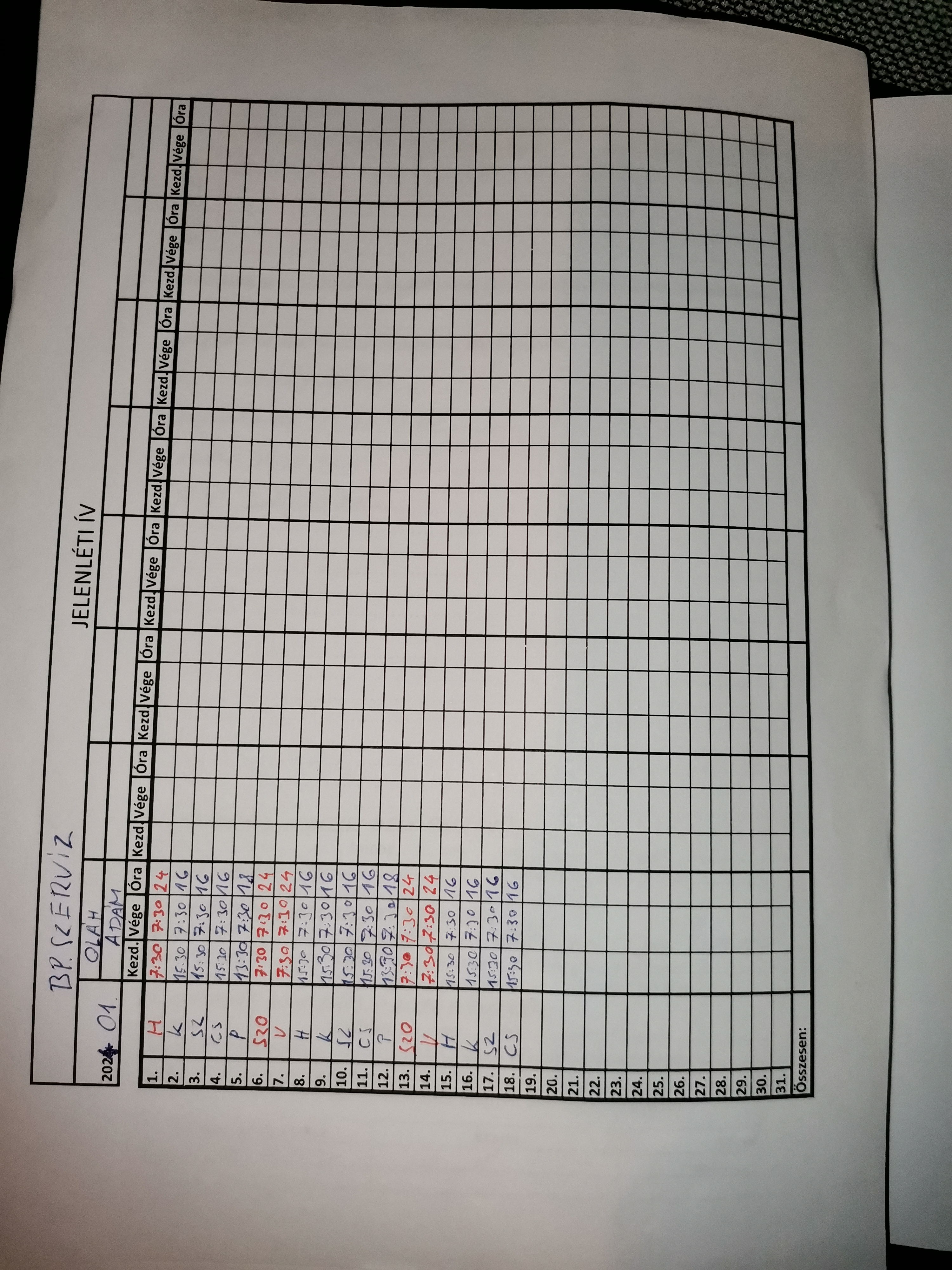 | A munkaidő nyilvántartás (jelenléti ív) vezetése | Megfelel |