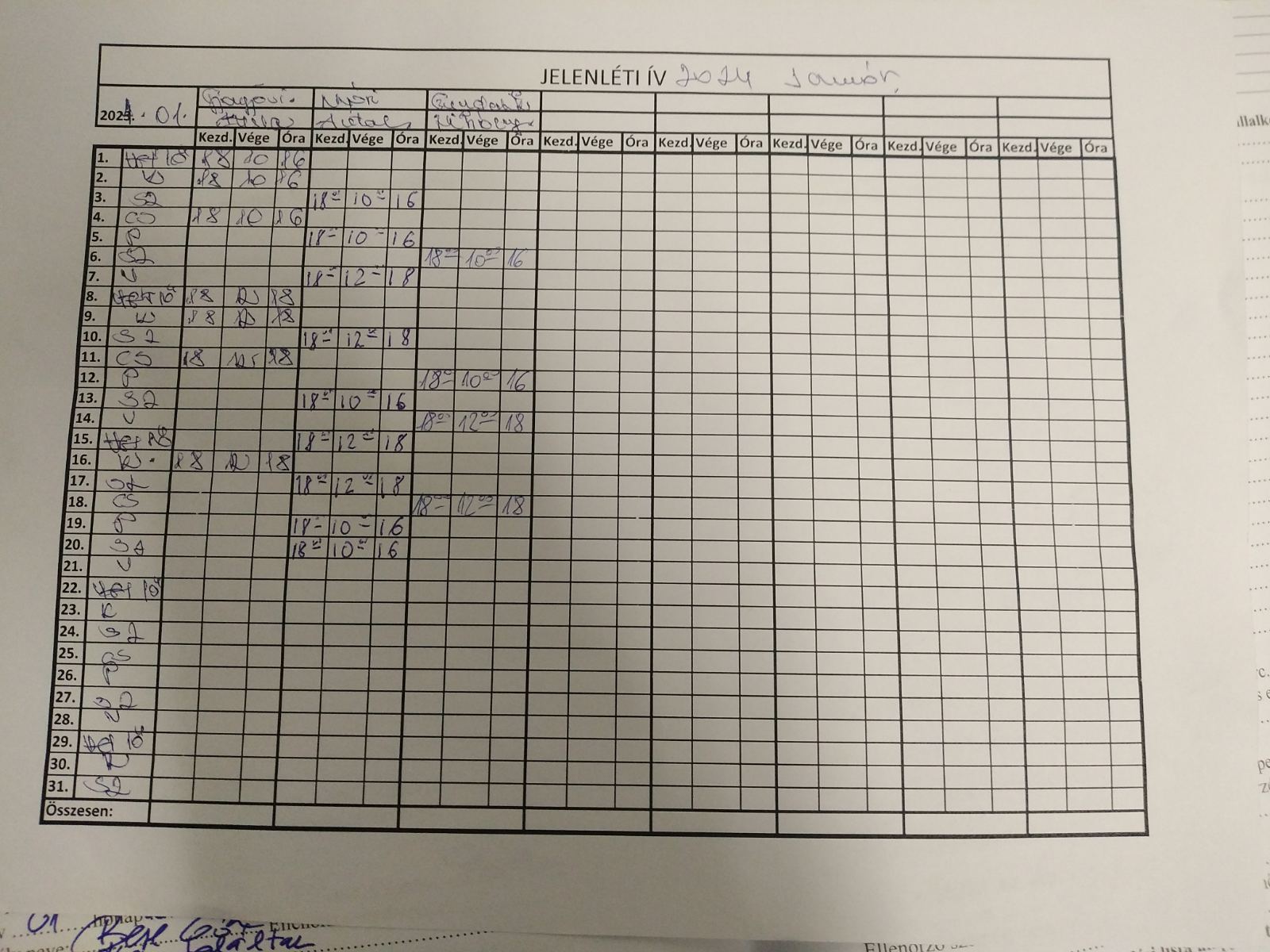 | A munkaidő nyilvántartás (jelenléti ív) vezetése | Megfelel |