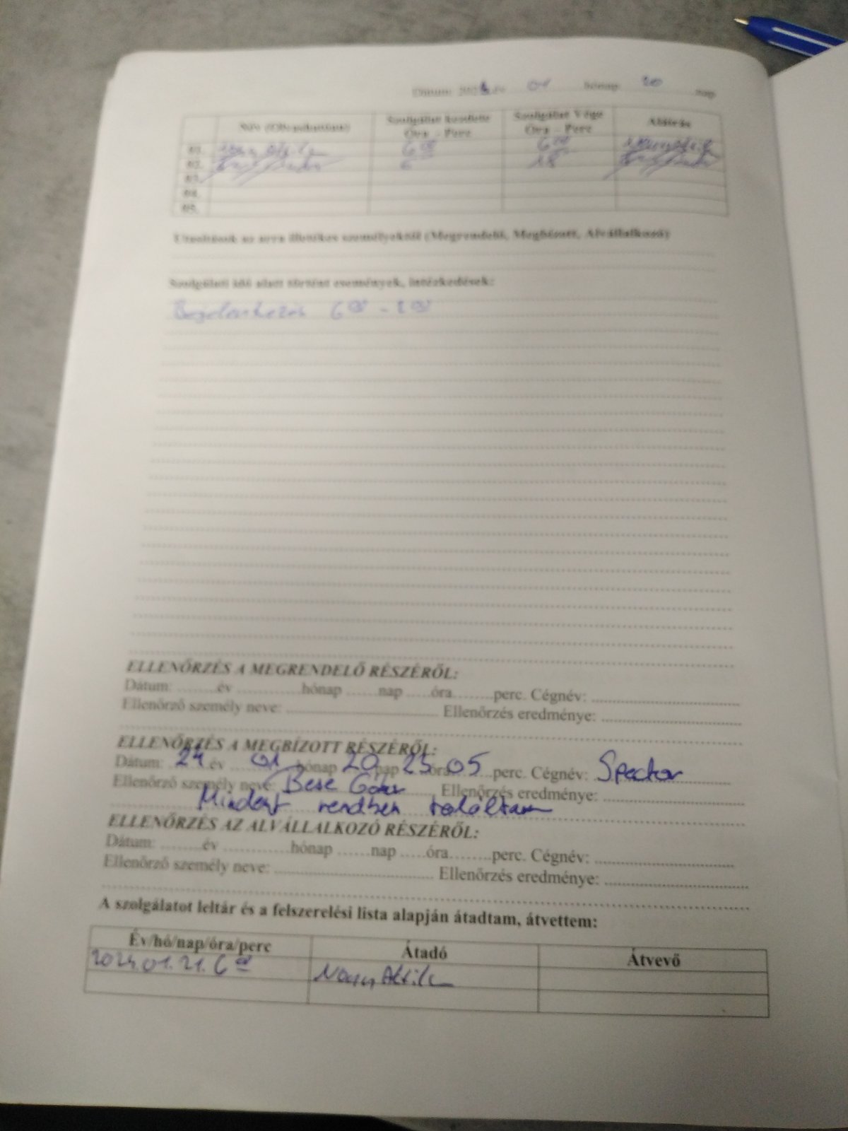| Van-e az ellenőrzött személynek egyéb észrevétele, javaslata? | Nem |