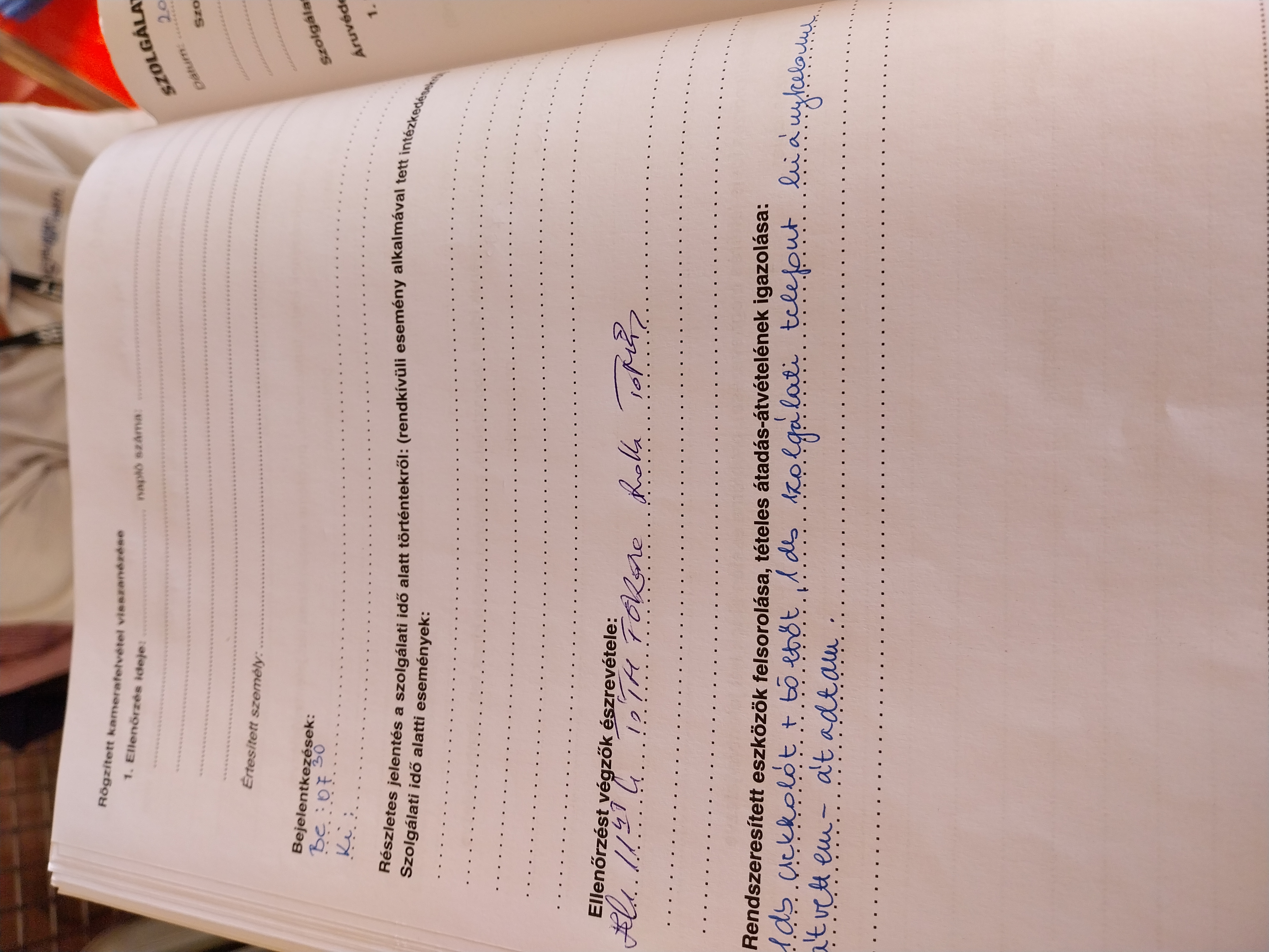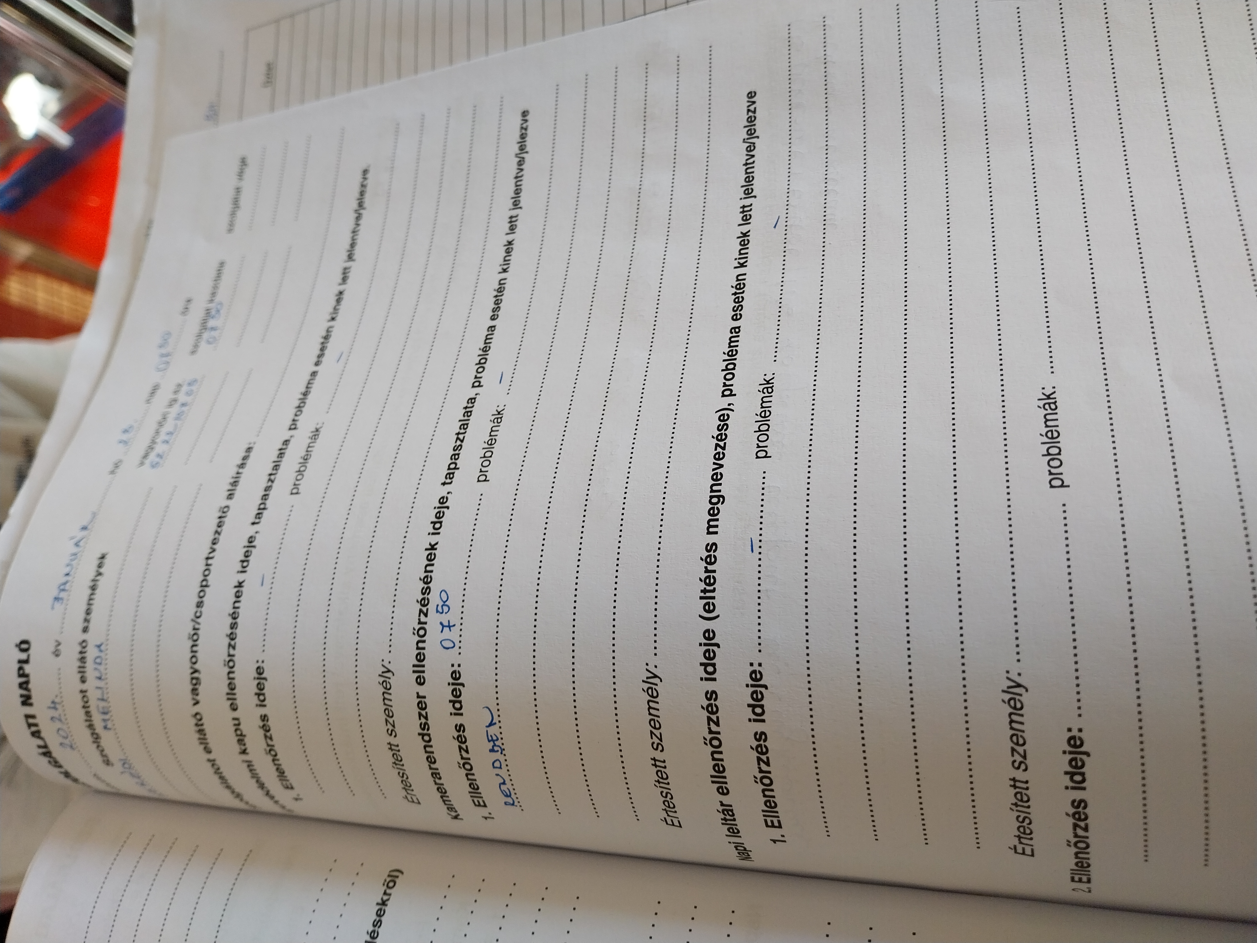 | Az őrzési helyre kiadott munkaeszközök megléte | Megfelel |