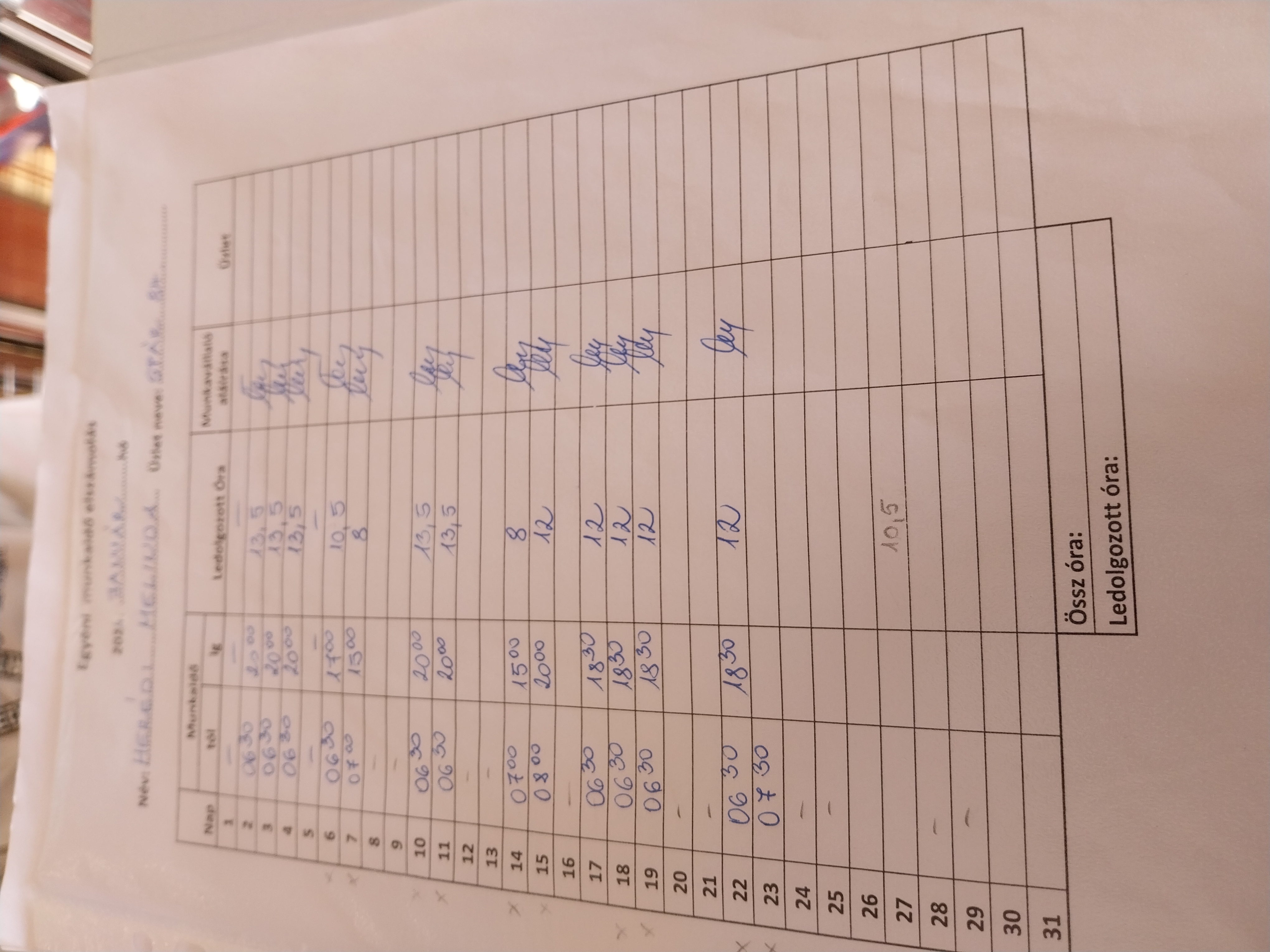 | A munkaidő nyilvántartás (jelenléti ív) vezetése | Megfelel |
