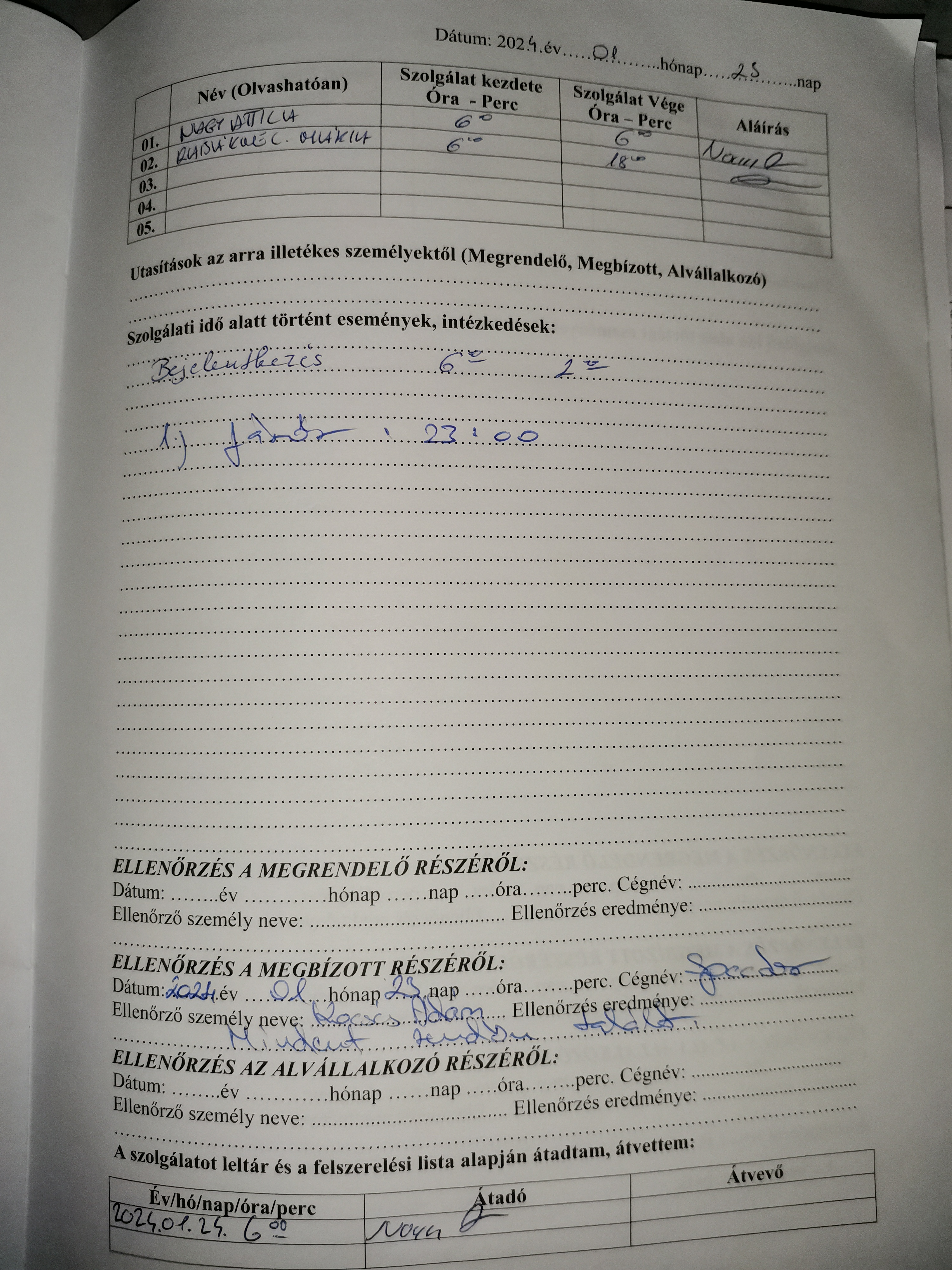 | Az őrhelyre kötelezően előírt oktatások igazolásának megléte | Nem releváns |