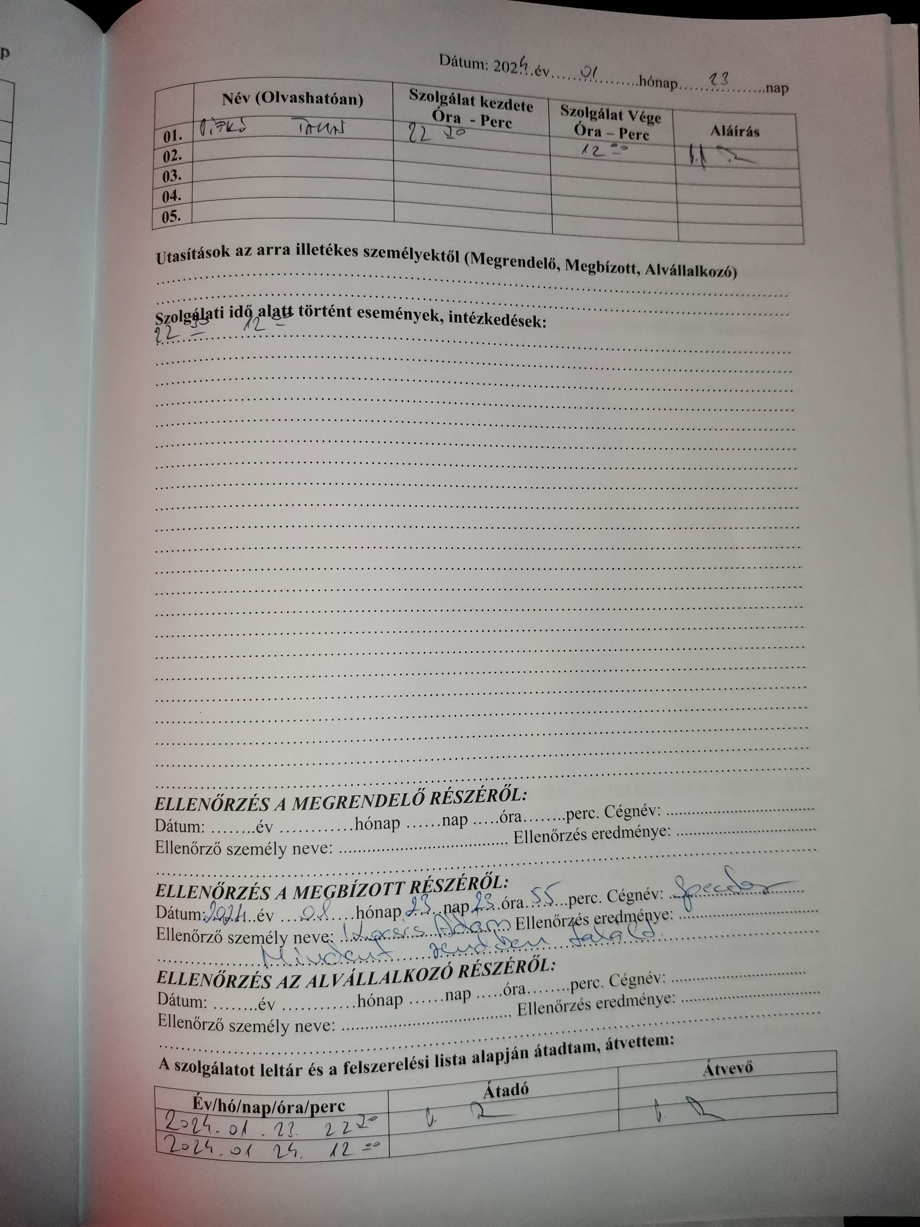 | Van-e az ellenőrzött személynek egyéb észrevétele, javaslata? | Nem |