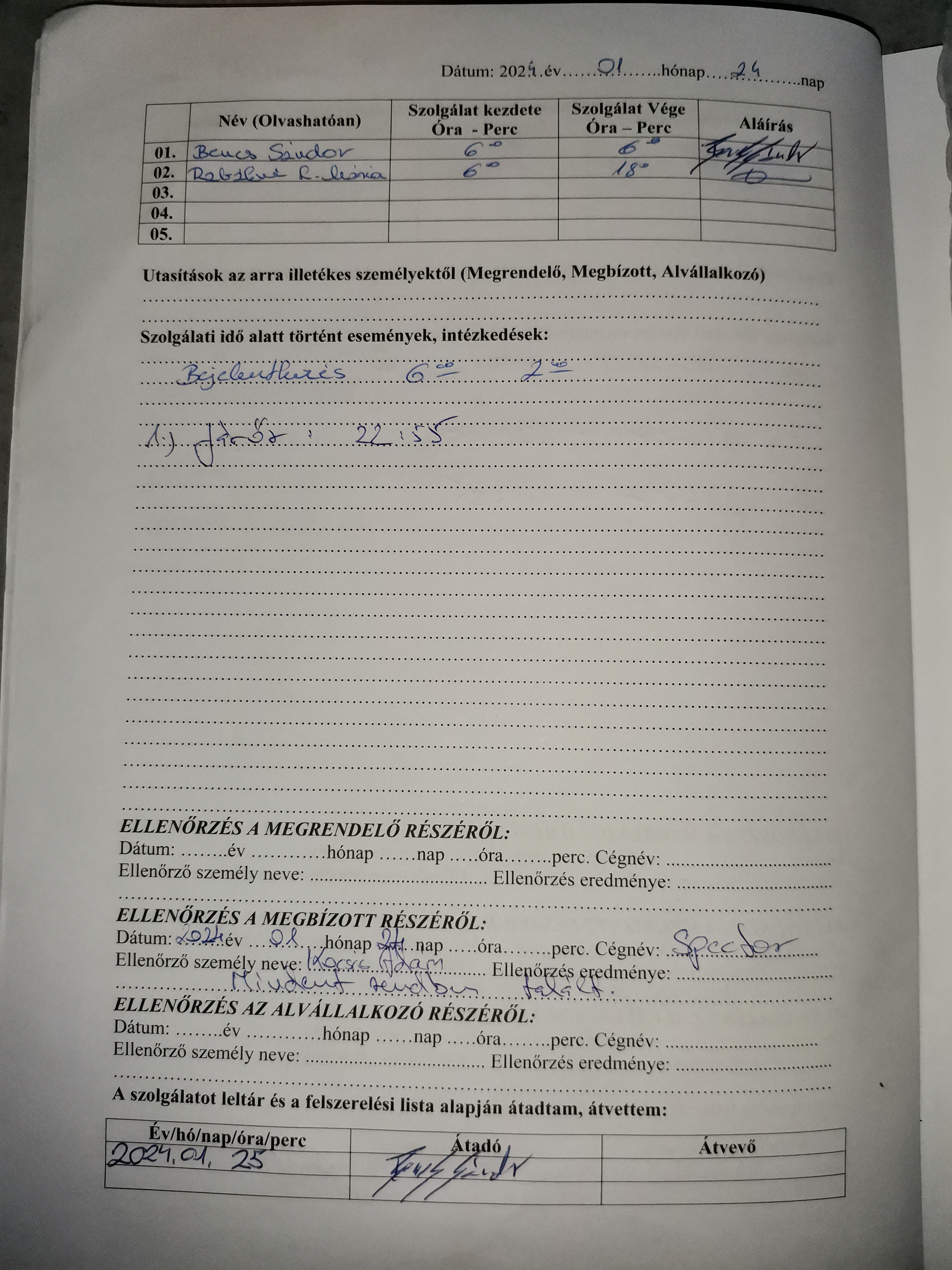 | Az őrhelyre kötelezően előírt oktatások igazolásának megléte | Nem releváns |