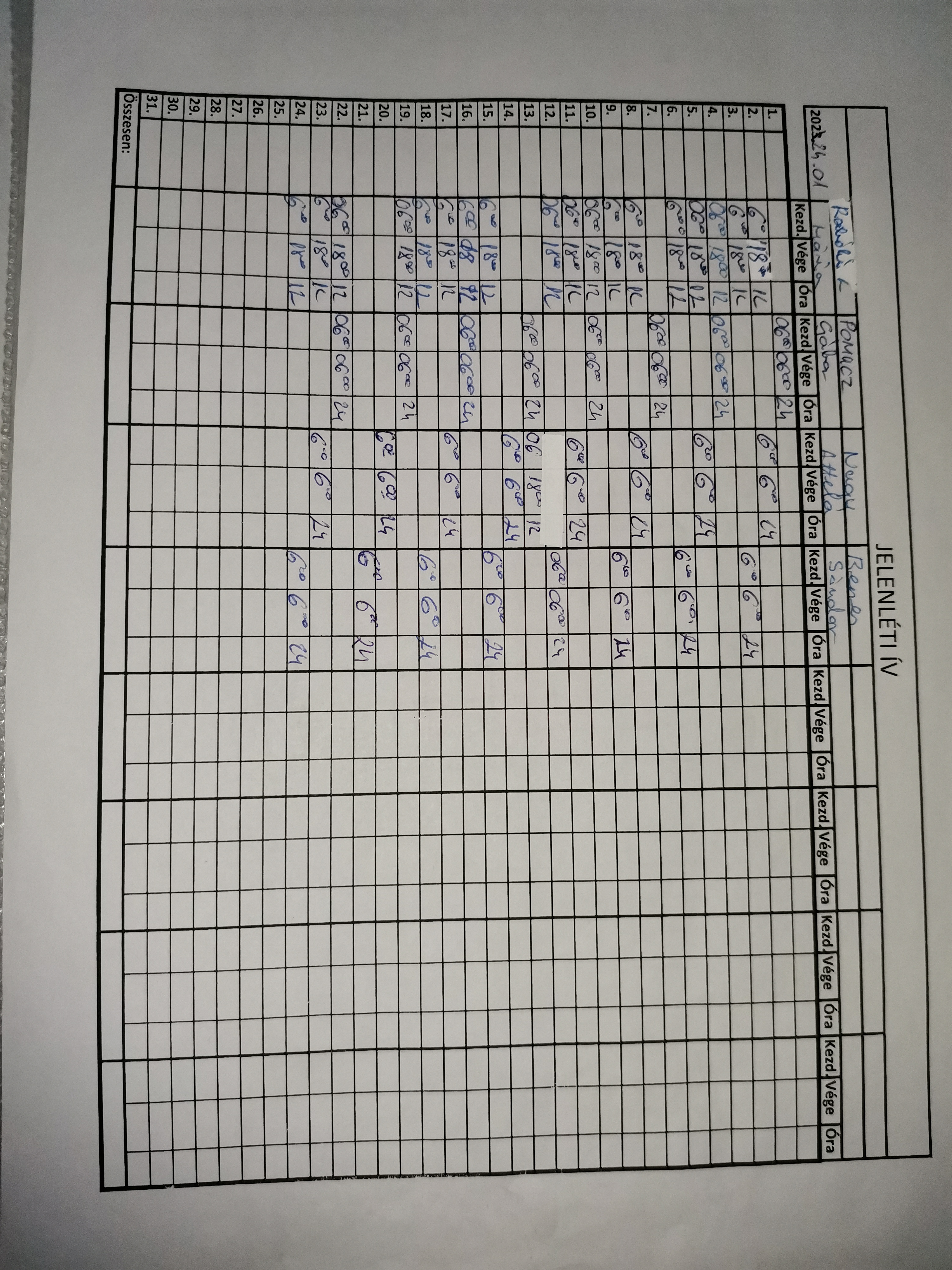 | A munkaidő nyilvántartás (jelenléti ív) vezetése | Megfelel |